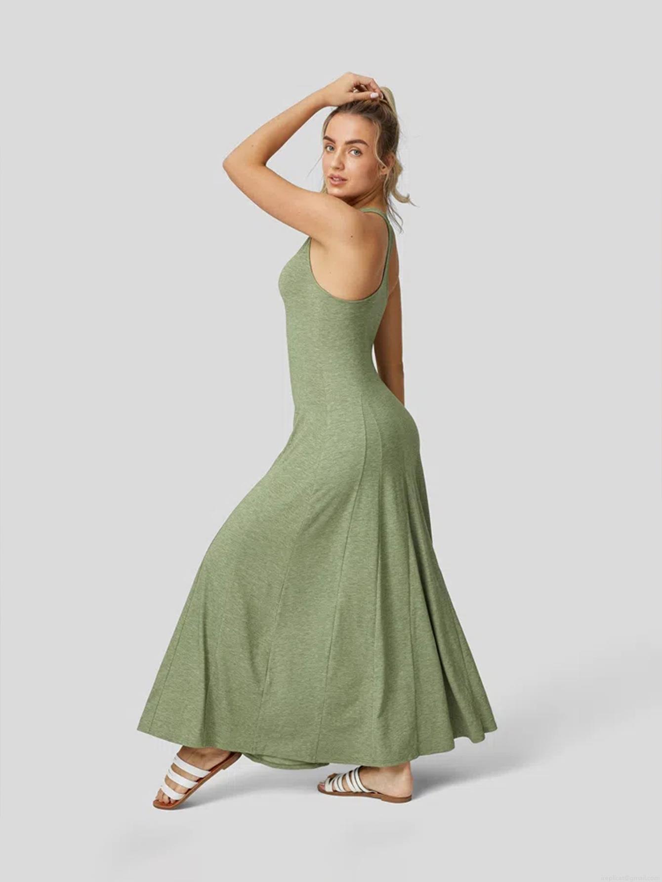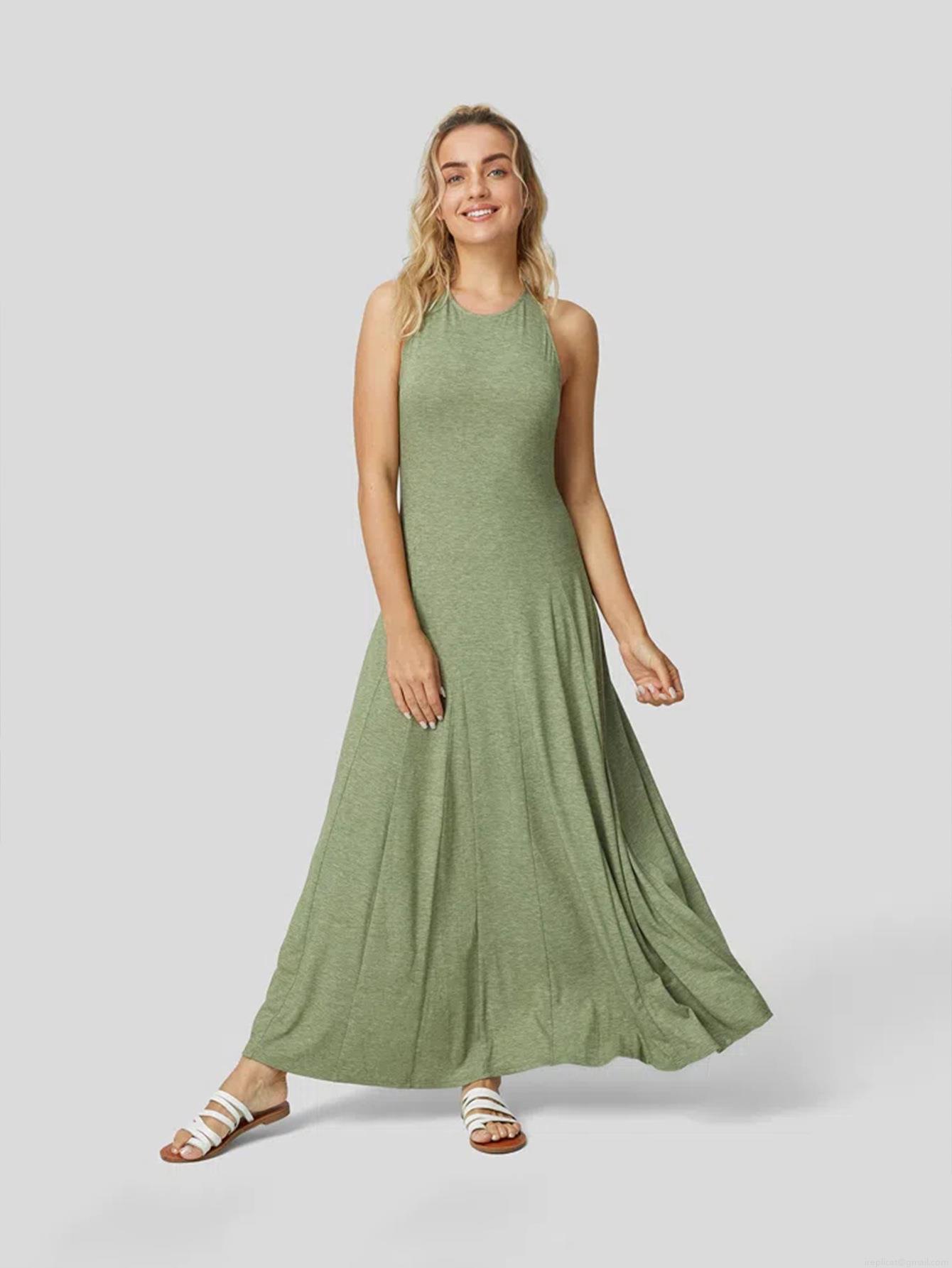 • Women's Knitted Polyester Viscose Maxi Dress Sleeveless Racerback Backless A-Line Swing Long Dress For Vacation Leisure Ladies Solid Green Summer Dress