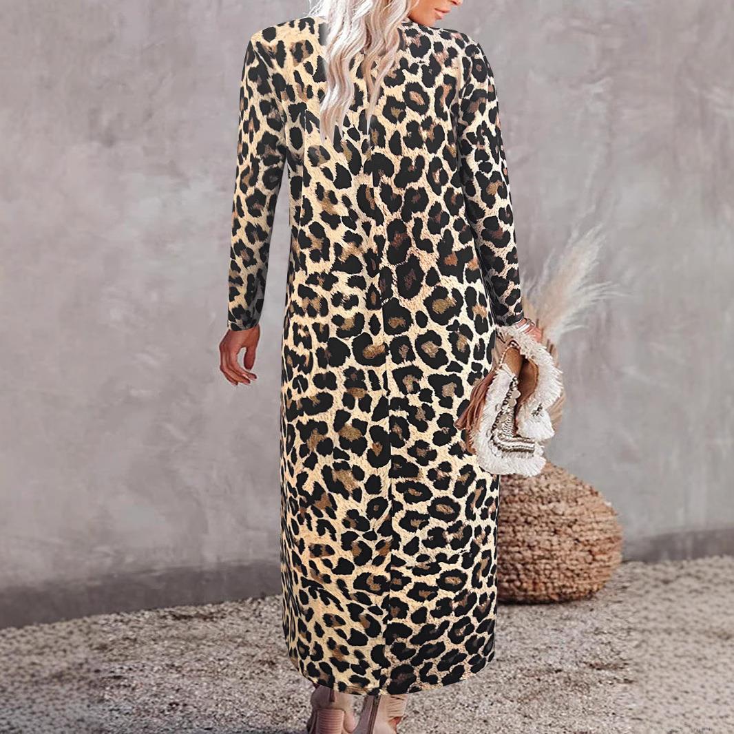 • Women's Leopard Print Long Sleeve Maxi Dress Casual V Neck A-Line Pullover Long Dress For Daily Party Dating Comfortable Polyester Spandex Blend Autumn Fashion Clothing