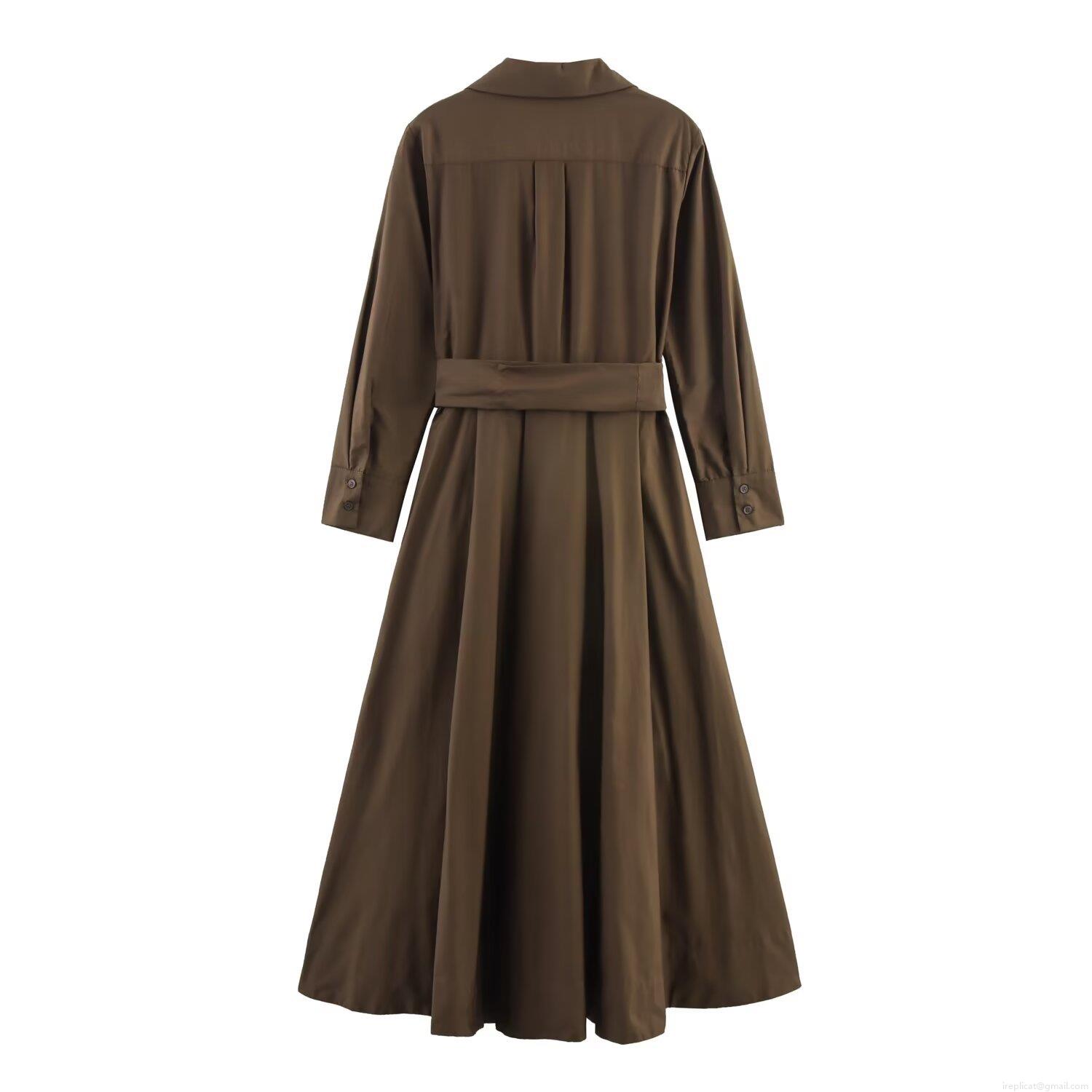 • Women's Long Sleeve Poplin Shirt Dress Casual Solid Color Lapel A-Line Maxi Dress With Belt Elegant Office Lady Autumn Outfit