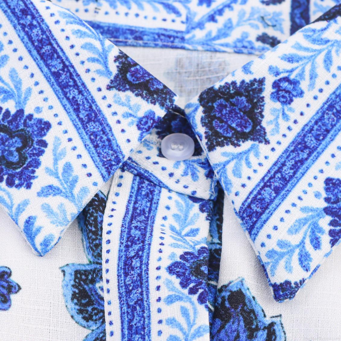 • Women's Long Sleeve Shirt Maxi Dress Blue White Porcelain Floral Print Tiered Long Dress With Waist Tie Vacation Beach Bohemian Style Elegant Gown For Lady