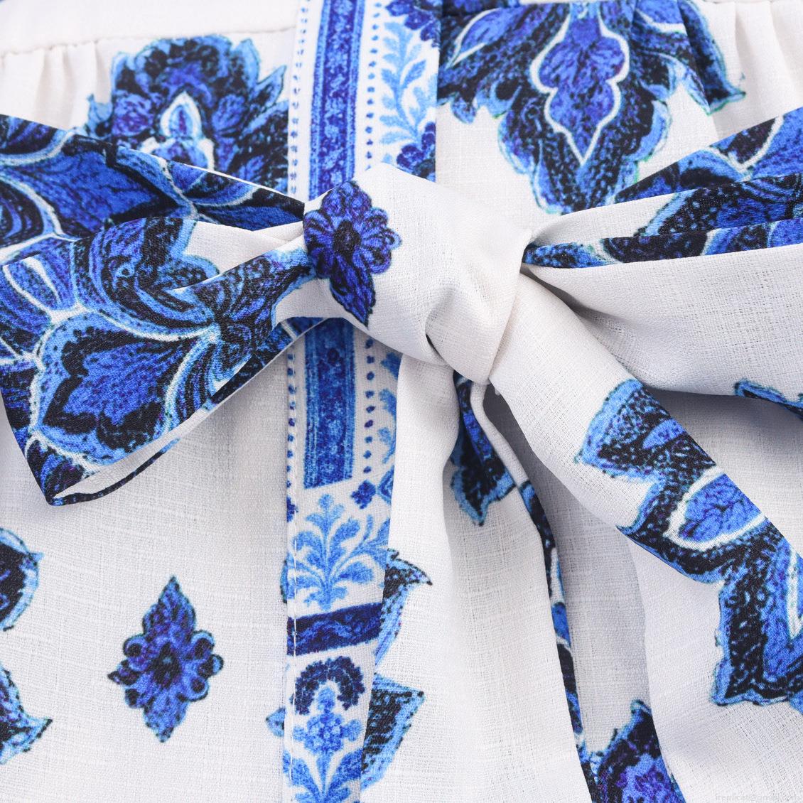 Geometric Patterns, Flowers, Printing, Cake Skirt, Waist Tie, Blue And White Porcelain Patterns, Layered Splicing