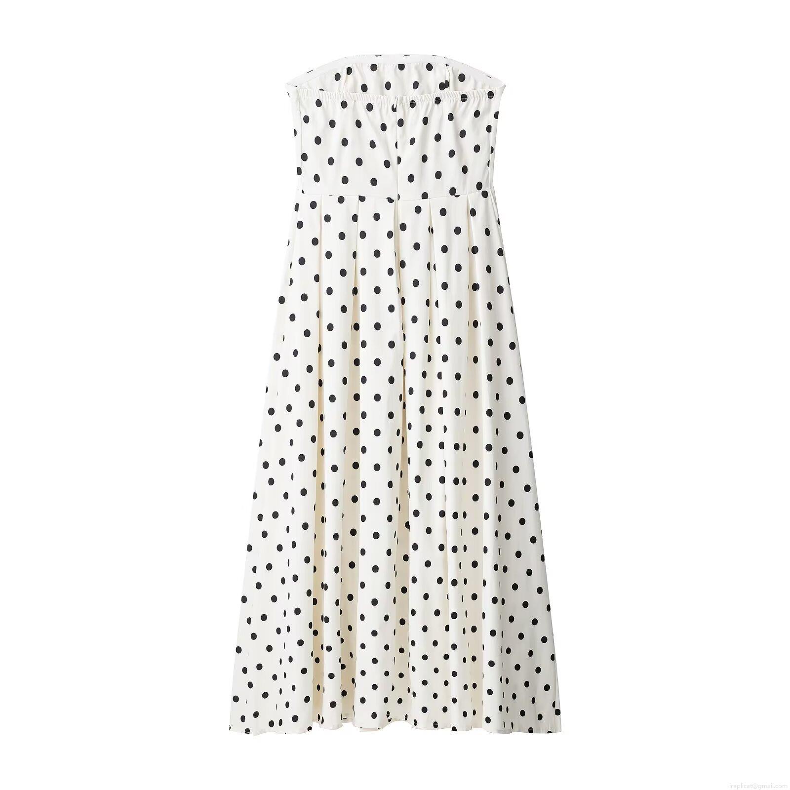 Women's Maxi Dress Sexy Polka Dot Tube Top Polyester Off-Shoulder Elegant High Waist Pleated A-Line Long Dress For Summer Party Vacation