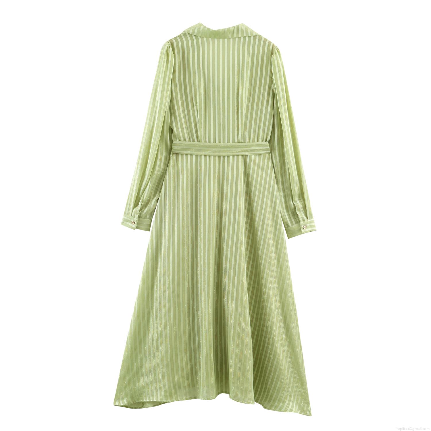 • Women's Metallic Stripe Shirt Maxi Dress Long Sleeve Slim Fit Cargo Style With Belt Elegant Button Down Dress For Streetwear Casual Work