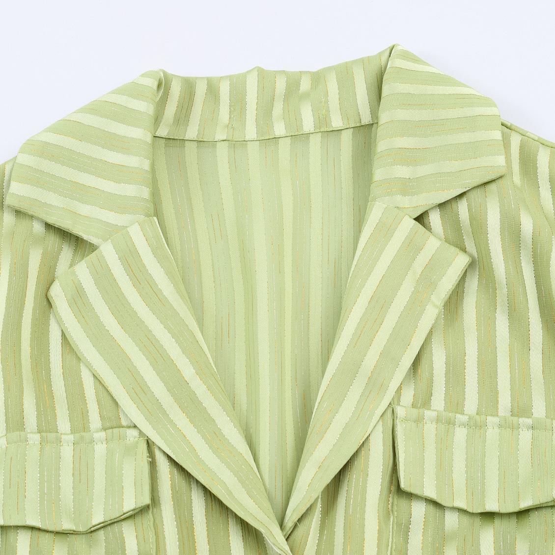 Stripe, Gold Thread, Single-breasted, Glitter Decoration, Work Pockets, Metal D-buckle Belt