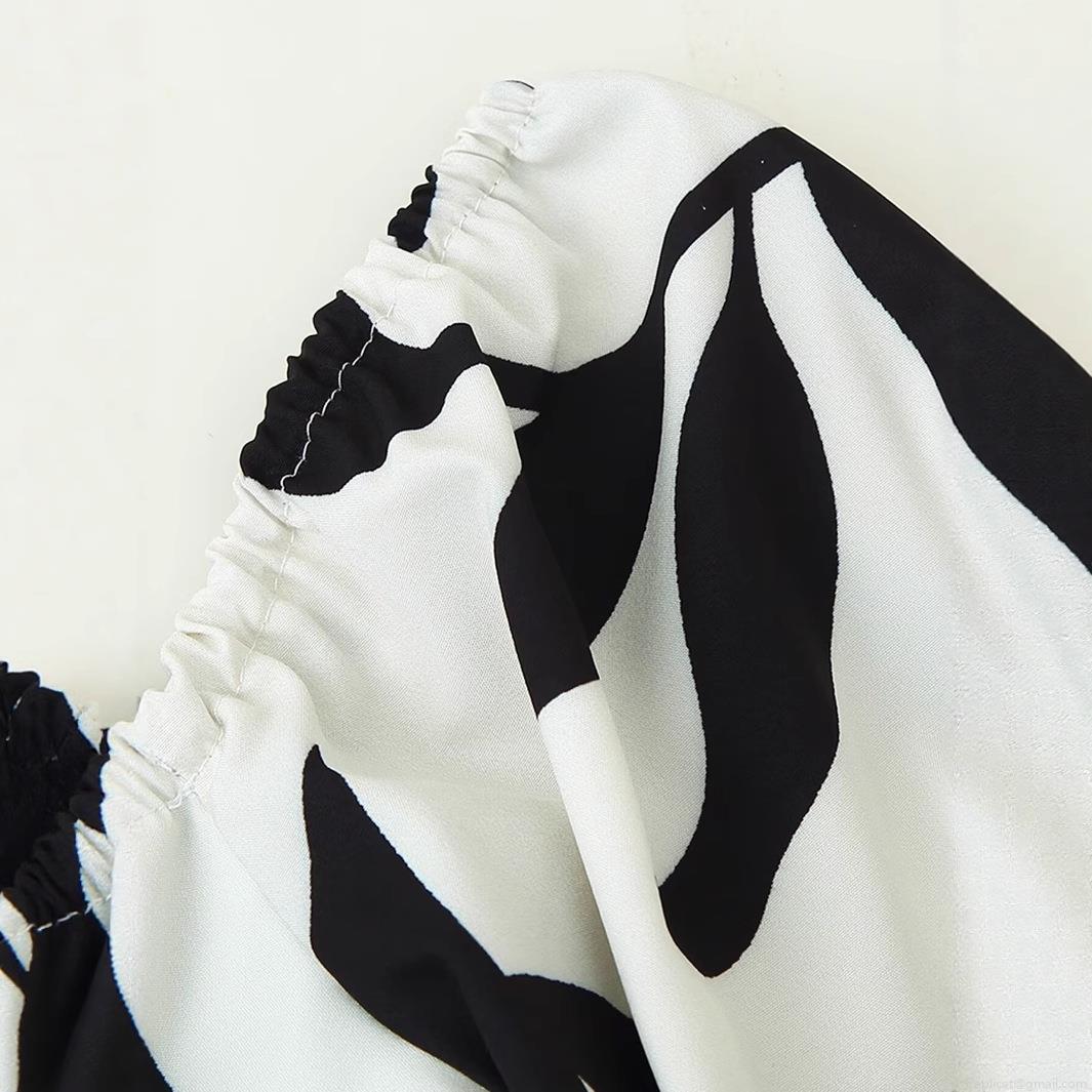 Splice, Hollow Out, Showing Off Your Waist, Puff Sleeves, Off-shoulder, Plant Leaves, Cake Skirt