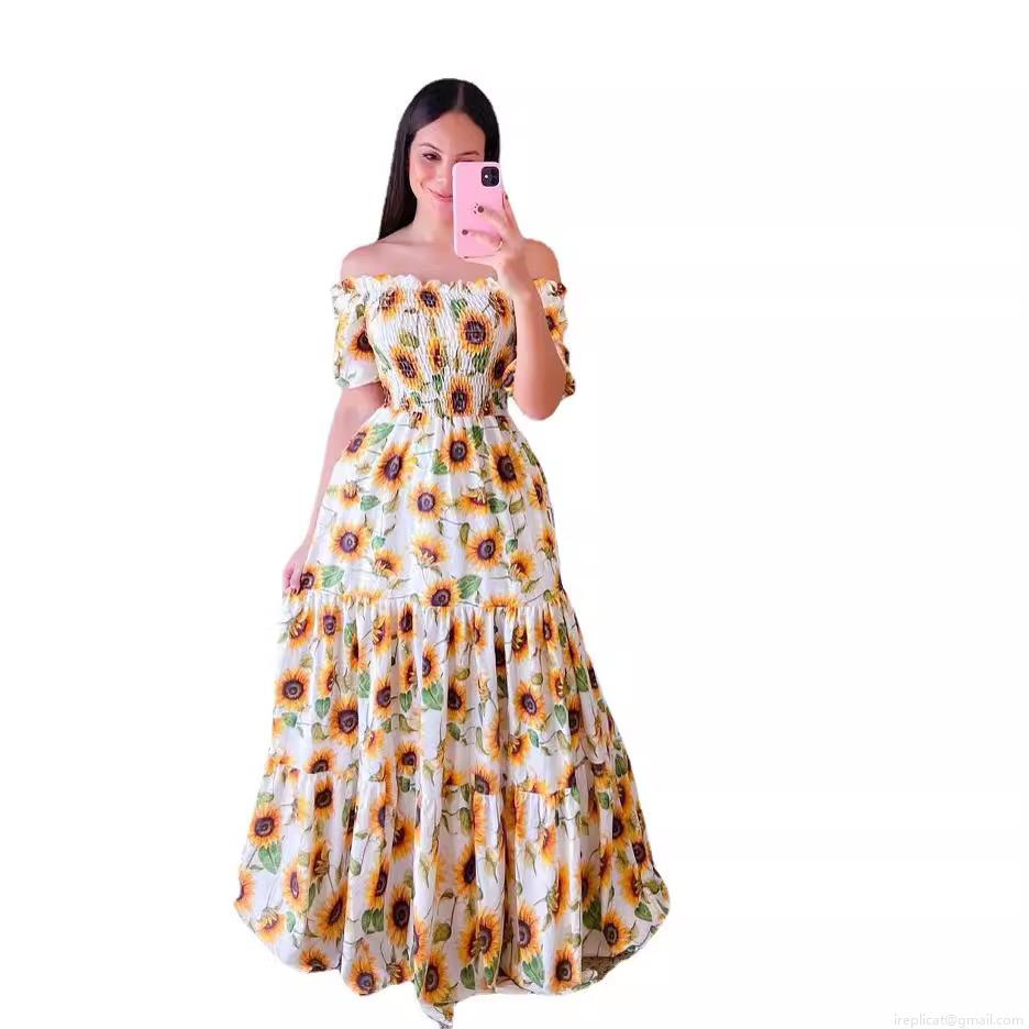Shell, Butterfly, Sunflower, Starry Sky, Polka Dots, Leopard Print, Floral Pattern, Pleats, Leaf, Printing, Gathering, Off-the-shoulder Neckline, Cake Skirt