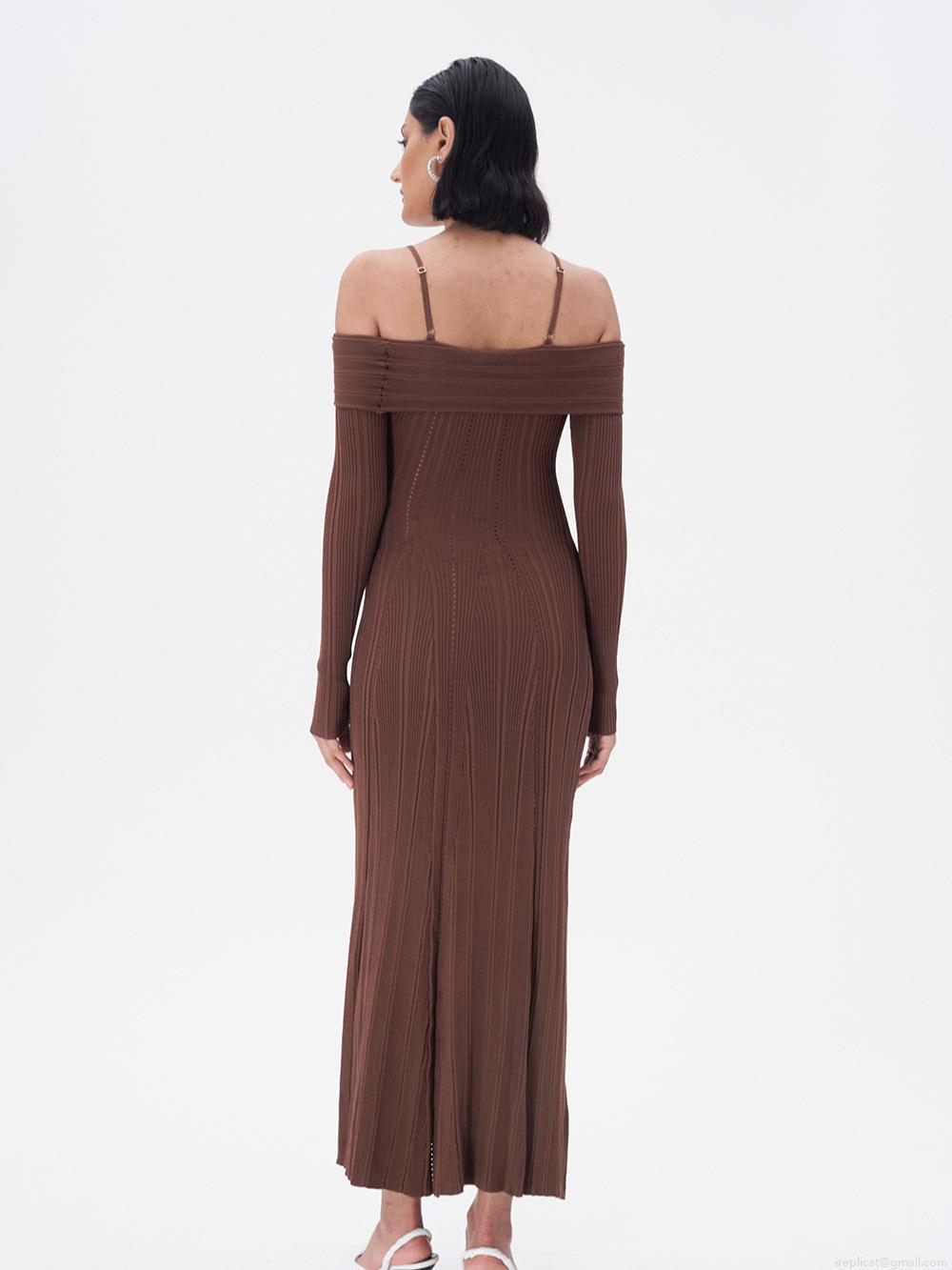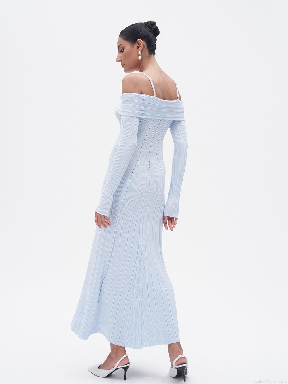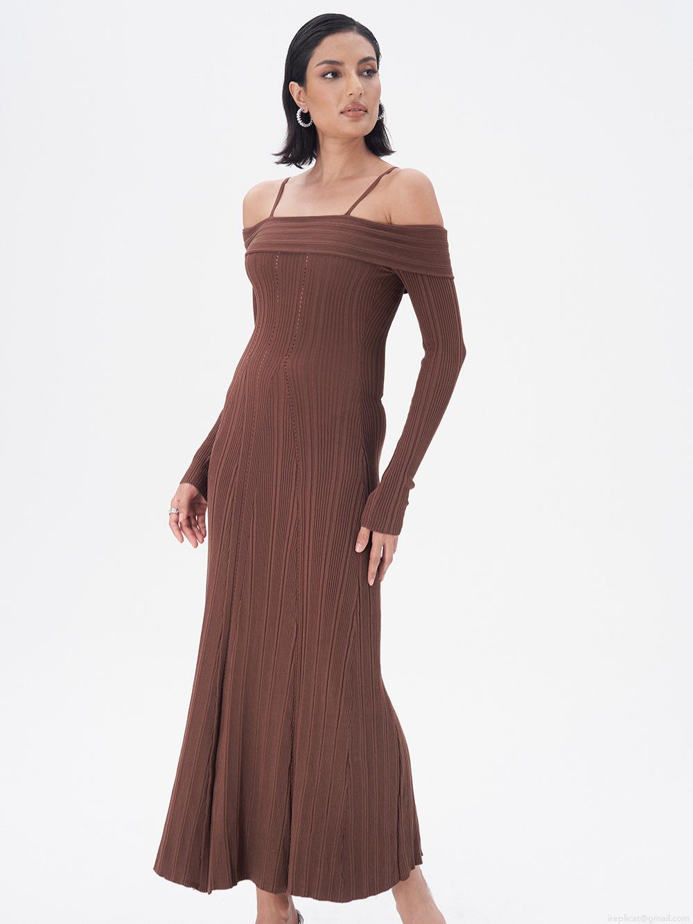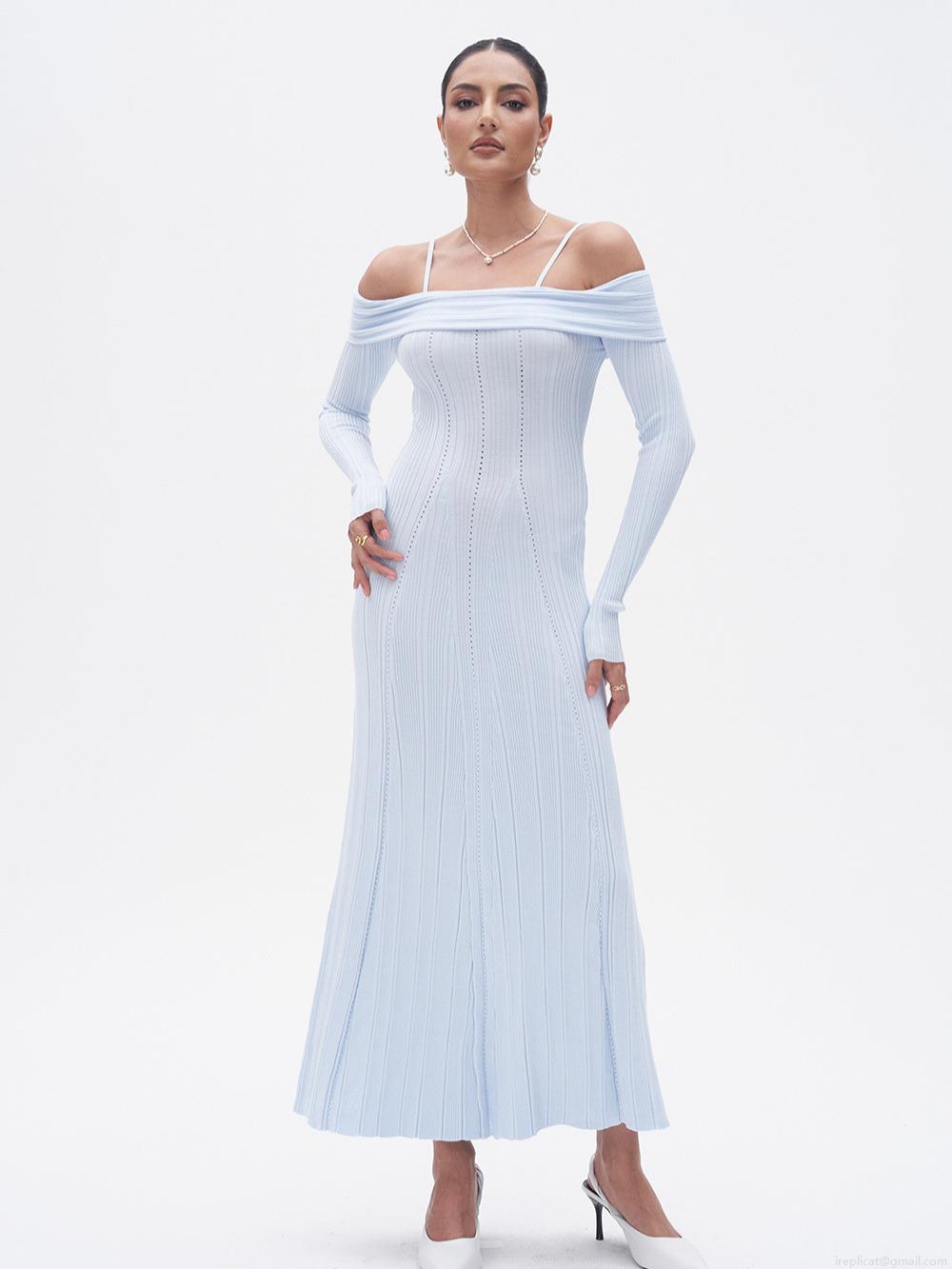 • Women's Off-Shoulder Ribbed Knitted Fish Tail Maxi Dress Elegant Rayon Nylon Slim Fit Spaghetti Strap Hollow Out Long Sleeve Dress for Party Evening