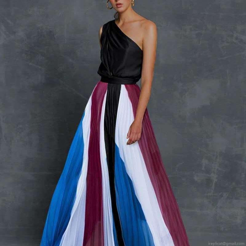 • Women's One Shoulder Color Block Maxi Dress Pleated A-Line Patchwork Sleeveless Long Party Evening Dress Polyester Elegant Slim Fit Summer Sun Dress