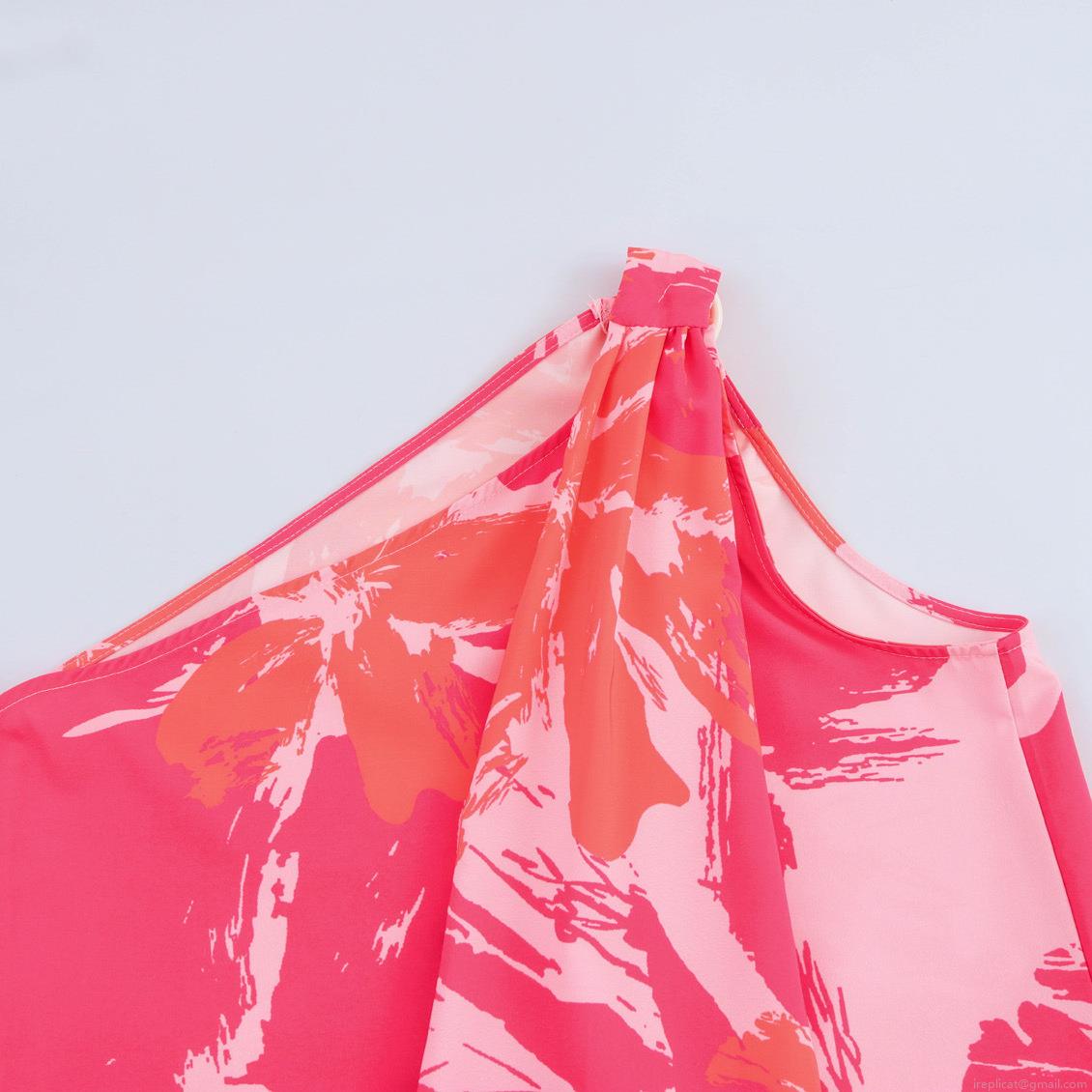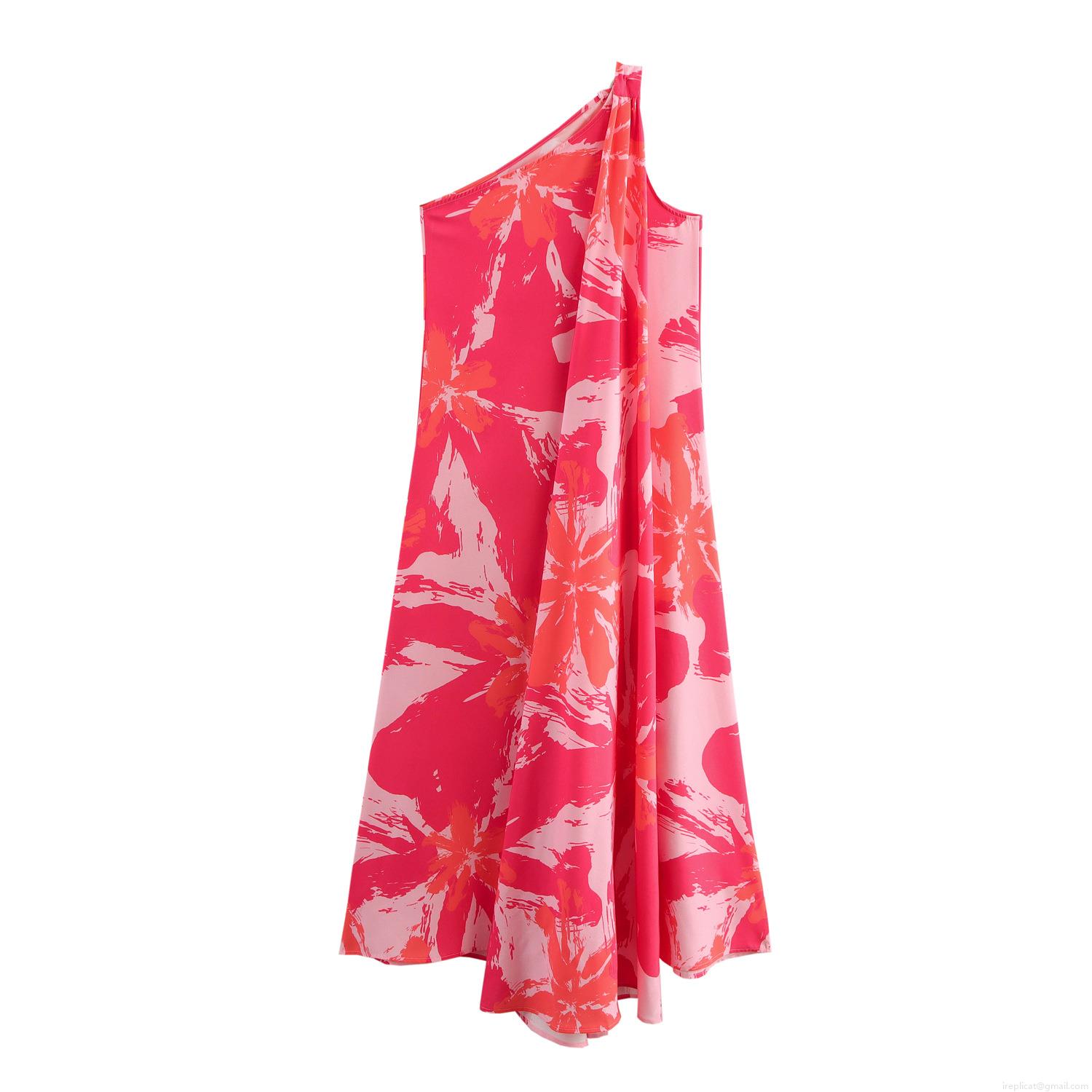 • Women's One Shoulder Floral Maxi Dress Polyester High Waist Sleeveless Slanted Neck A-Line Long Dress For Summer Holiday Party Fresh Sweet Style Elegant Women Sundress