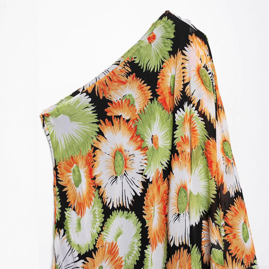 • Women's One Shoulder Maxi Dress Asymmetric Ruffle Sleeve Sunflower Floral Print Loose Waist A-Line Long Dress 100% Polyester Chiffon Streetwear Party Vacation