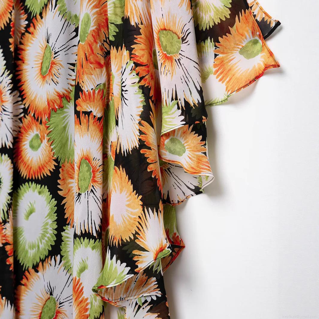 Daisy, Sunflower, Asymmetric, Pleats, Ruffles, Flowers, Printing