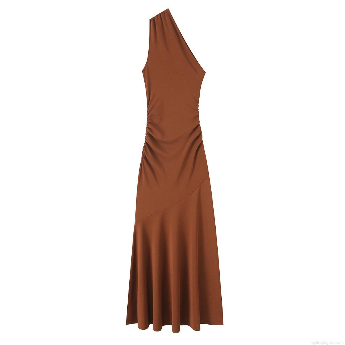 • Women's One Shoulder Ruched Maxi Dress Elegant Slim Fit Asymmetrical Hem Solid Color Jersey Bodycon Long Dress For Party Club Night
