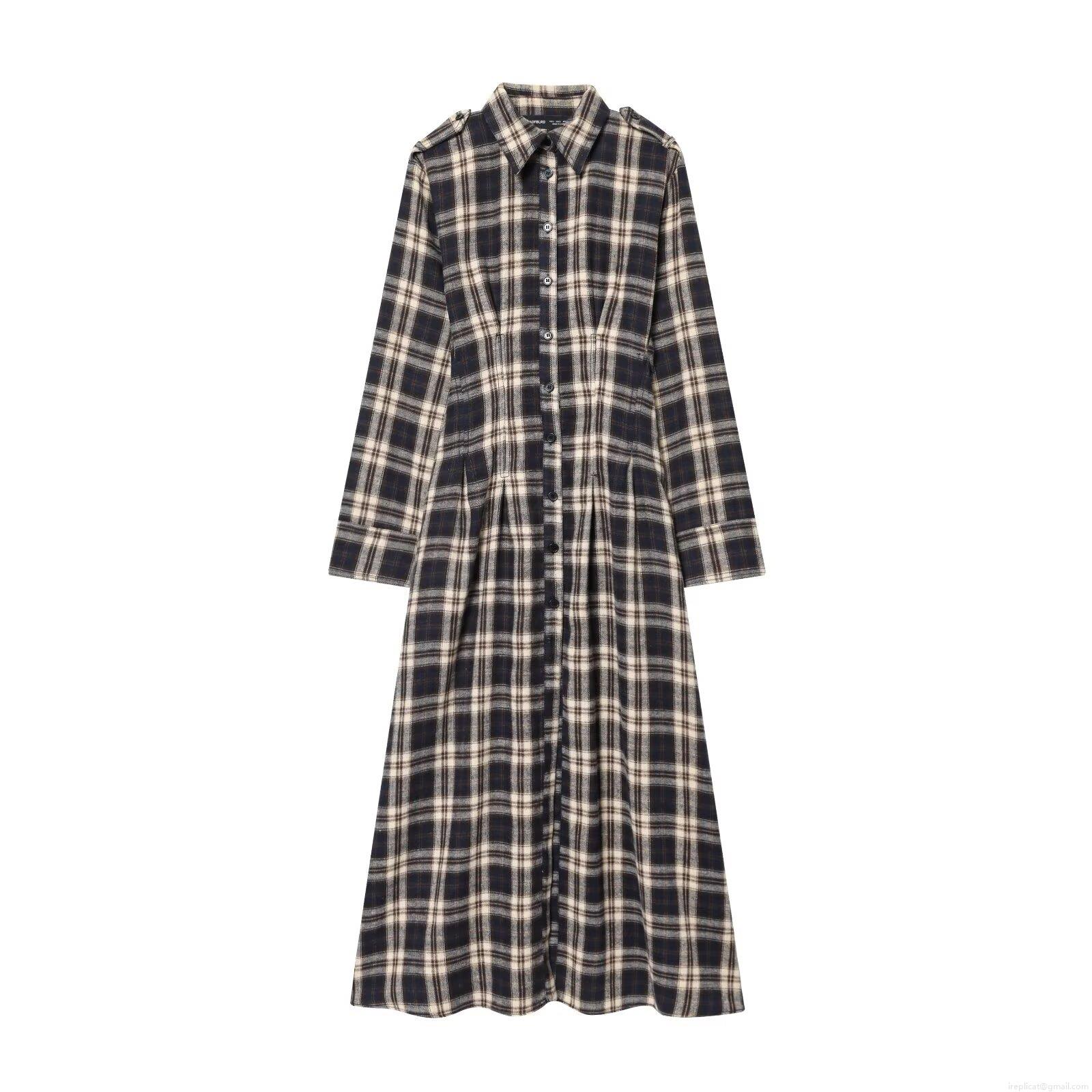 • Women's Plaid Maxi Shirt Dress Retro Long Sleeve High Waist A-Line Button Down Flannel Feel Dress With Epaulettes For Casual Daily Office Lady