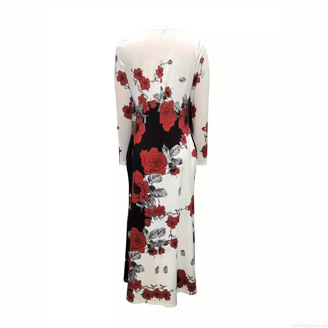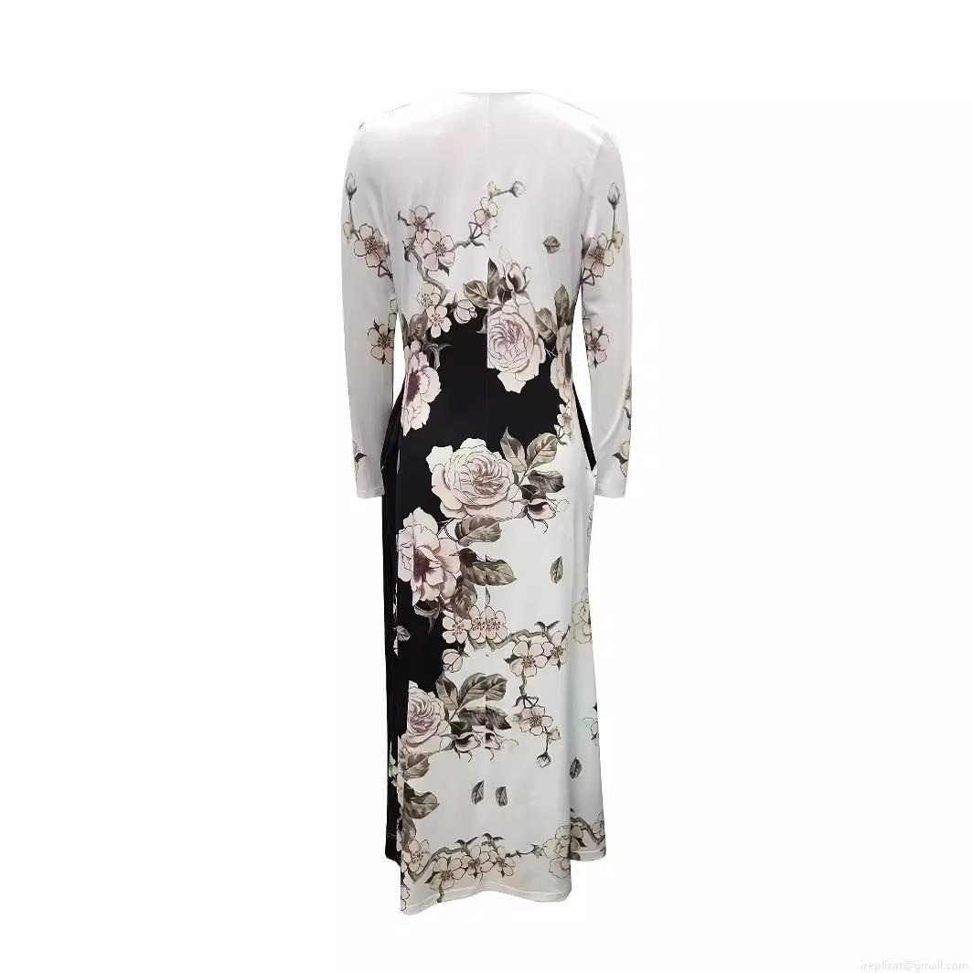 • Women's Plus Size Floral Print Maxi Dress Elegant Long Sleeve High Waist Round Neck Big Swing Dress With Pockets Floral Pattern Polyester Spandex Milk Silk Long Dress For Casual Evening Party Commute Women