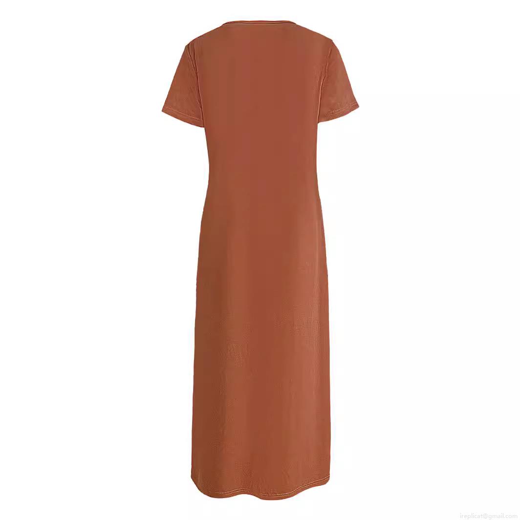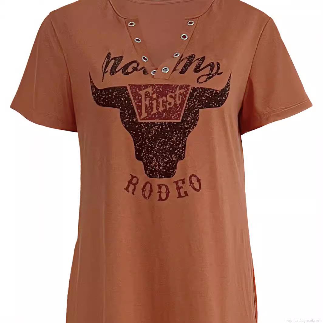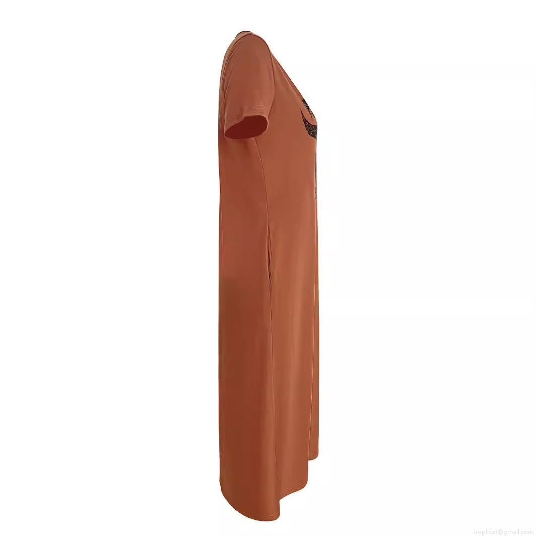 • Women's Plus Size Maxi Dress Retro Bull Head Letter Print Short Sleeve Round Neck Polyester Spandex Blend Casual Summer Dress With Pockets