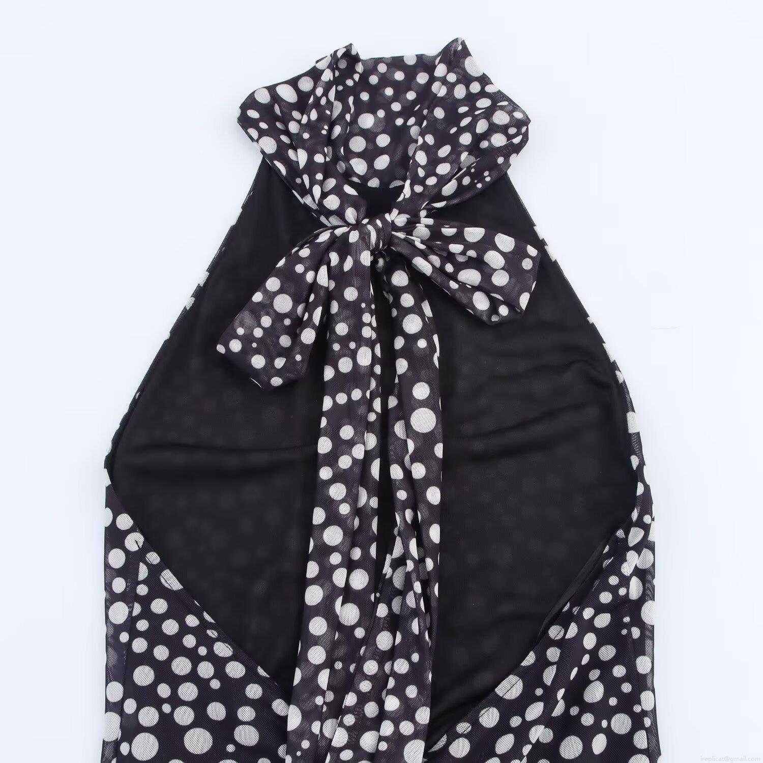 Women's Polka Dot Halter Dress Backless Lace Up Mesh Maxi Summer Party Beach Sexy Western Streetwear Vestido