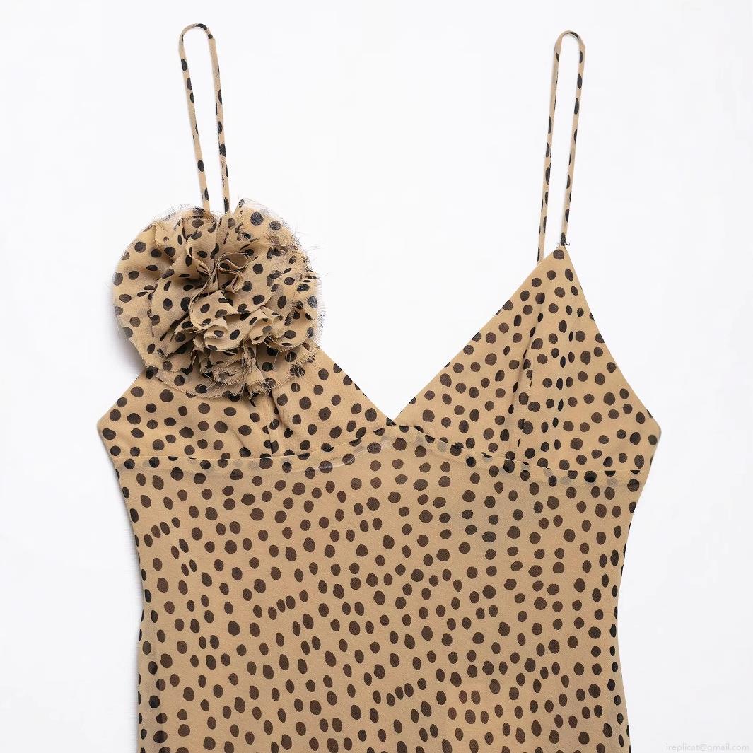 • Women's Polka Dot Maxi Dress Elegant 3D Flower Decoration Spaghetti Strap Mermaid Hem Polyester Evening Party Long Dress For Ladies Spring Summer
