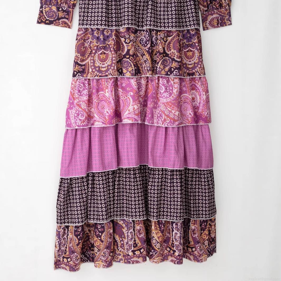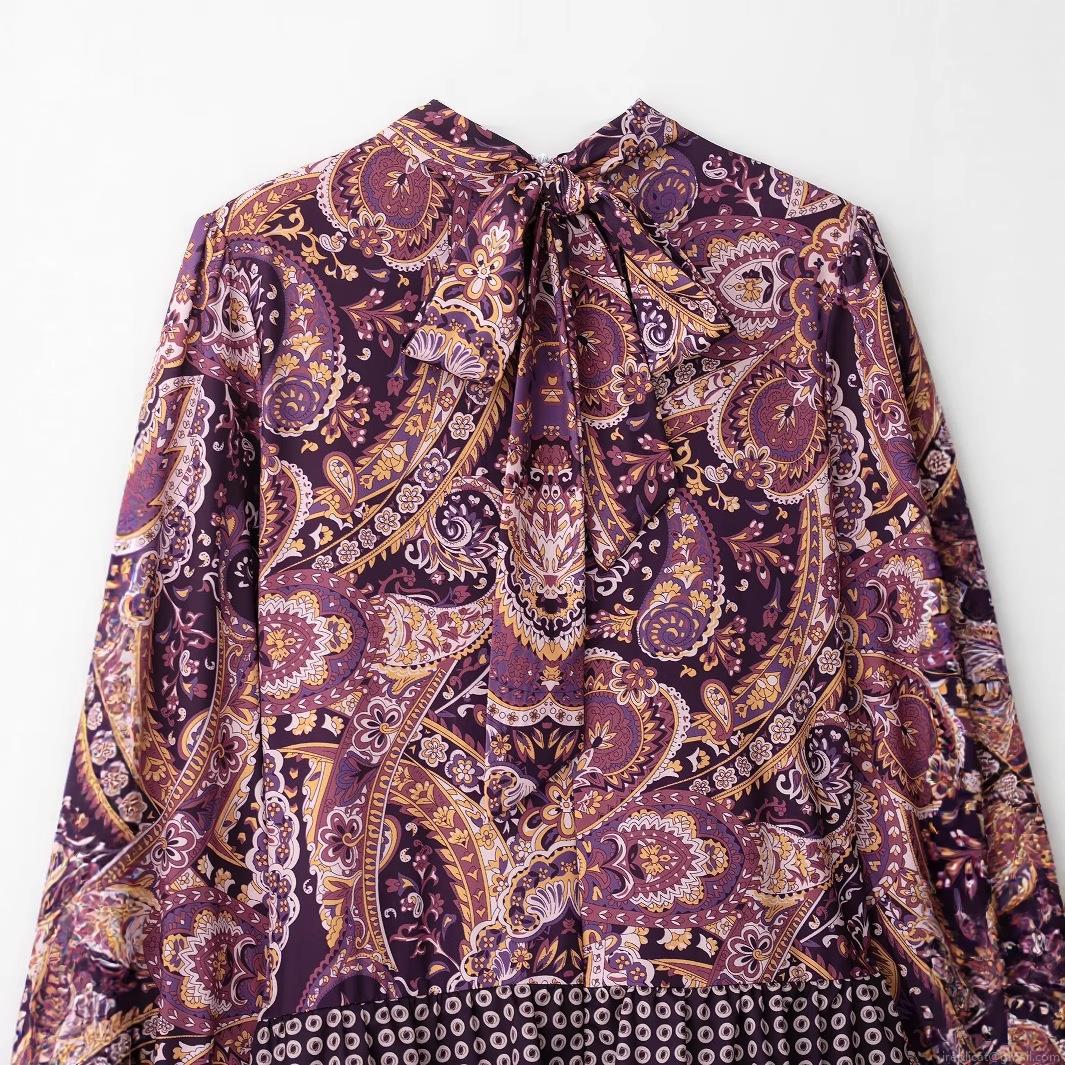 • Women's Retro Bohemian Paisley Print Maxi Dress Elegant Bow Tie Stand Collar Long Sleeve Tiered Cake Dress For Party Dating Women Polyester Dress