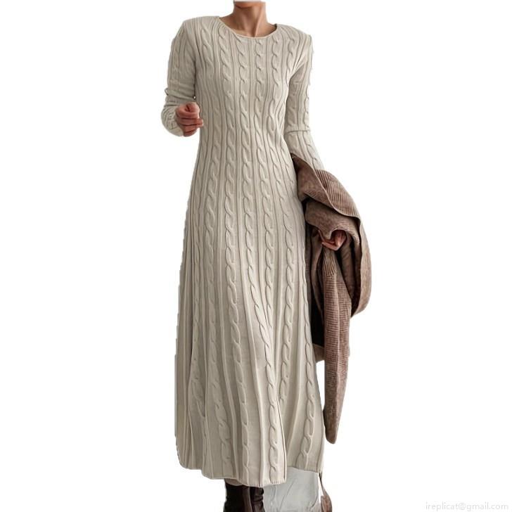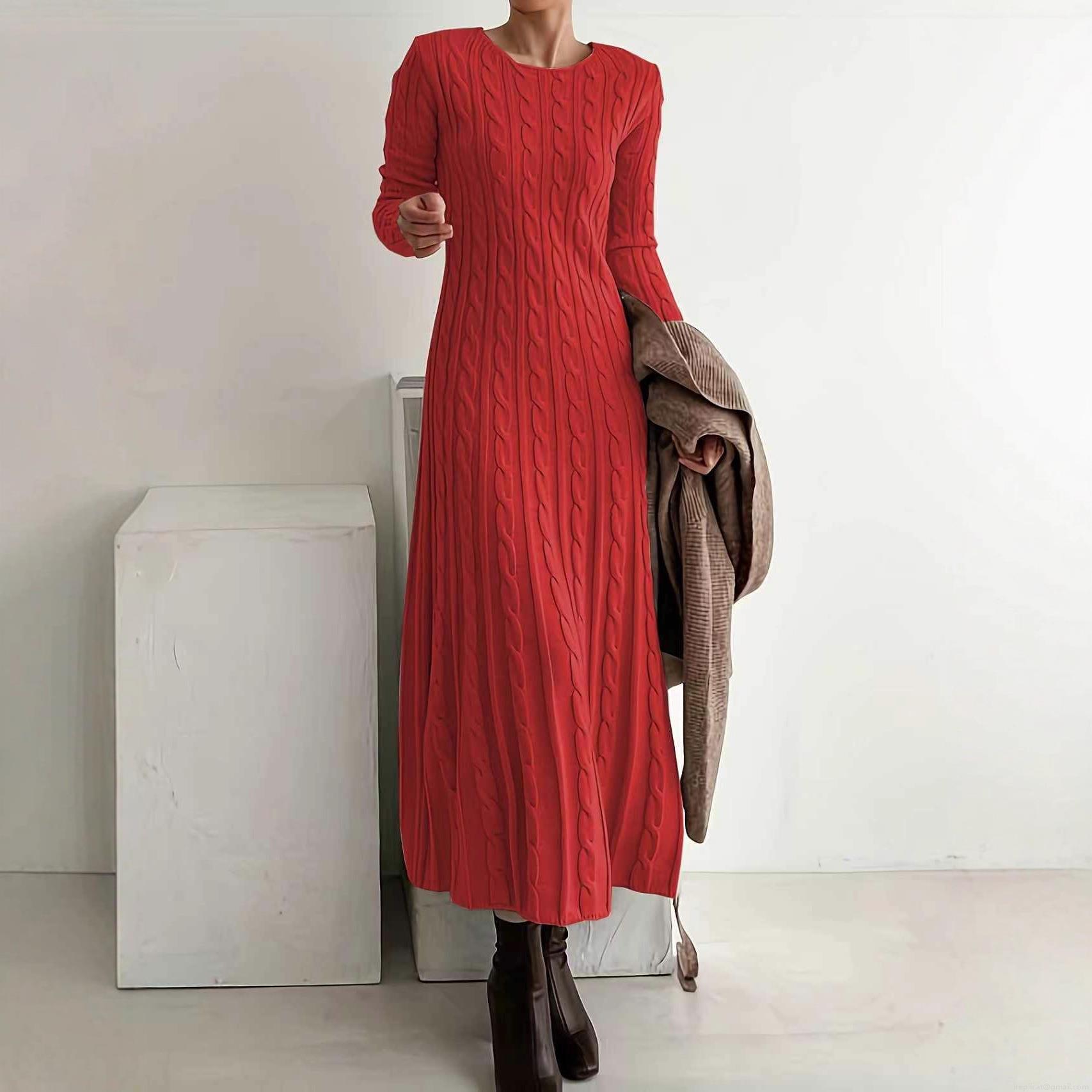 • Women's Retro Cable Knit Maxi Dress Long Sleeve Round Neck Slim Fit Knitted Sweater Dress For Autumn Winter Casual Commute Solid Color