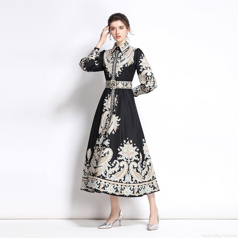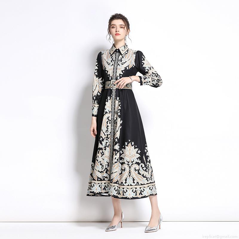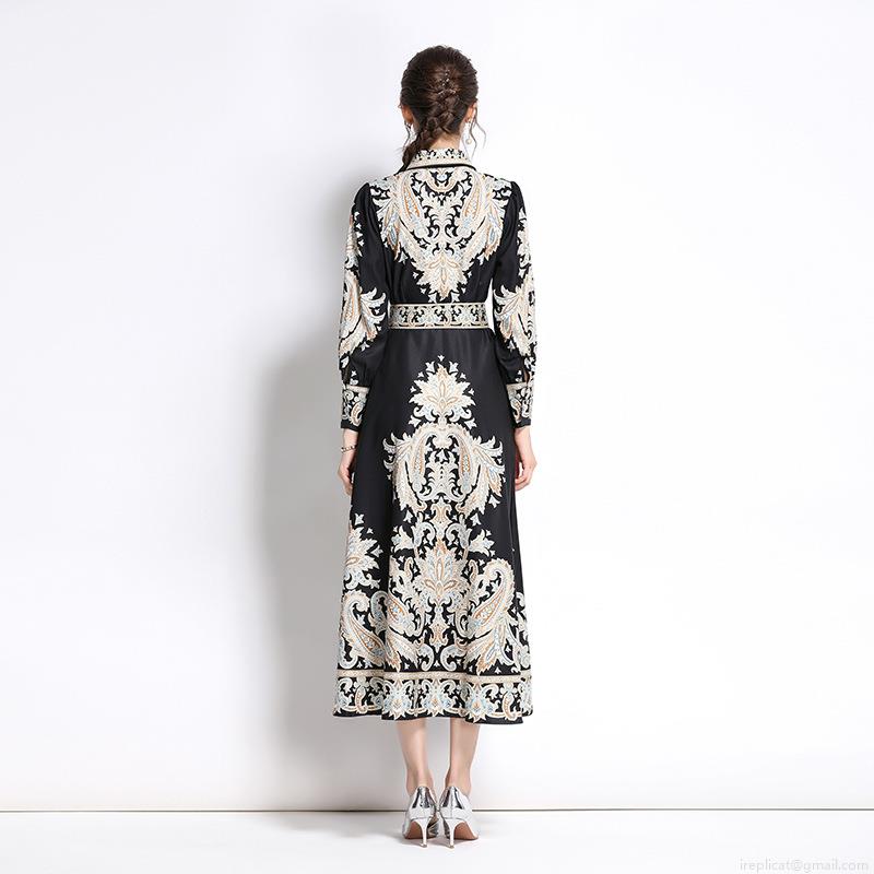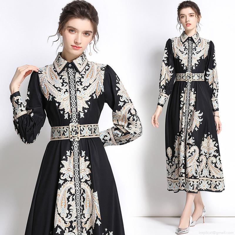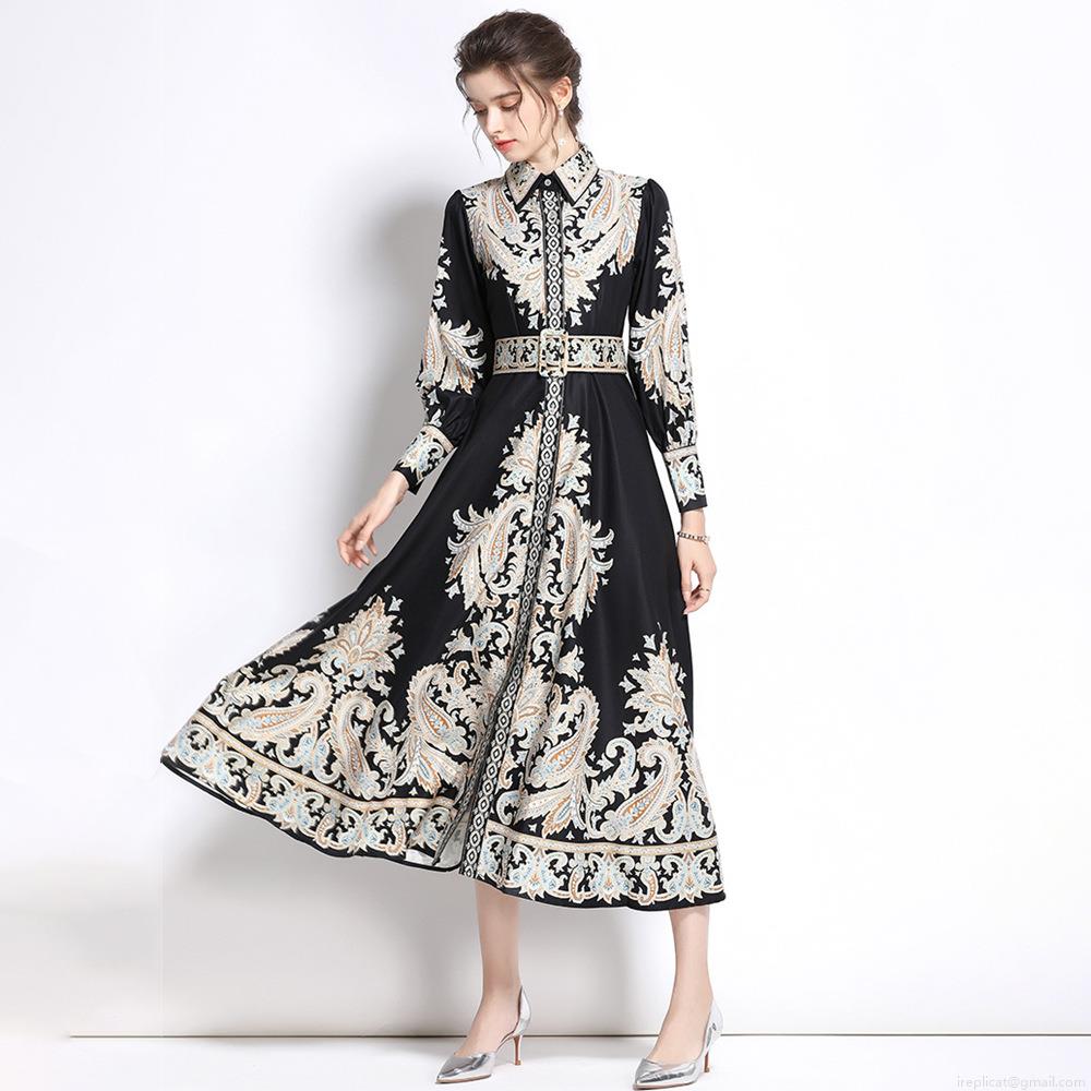 • Women's Retro Ethnic Paisley Print Maxi Dress Polyester Long Sleeve Lapel Single Breasted Slim Fit High Waist Long Dress With Belt For Daily Dating Elegant Ladies Apparel