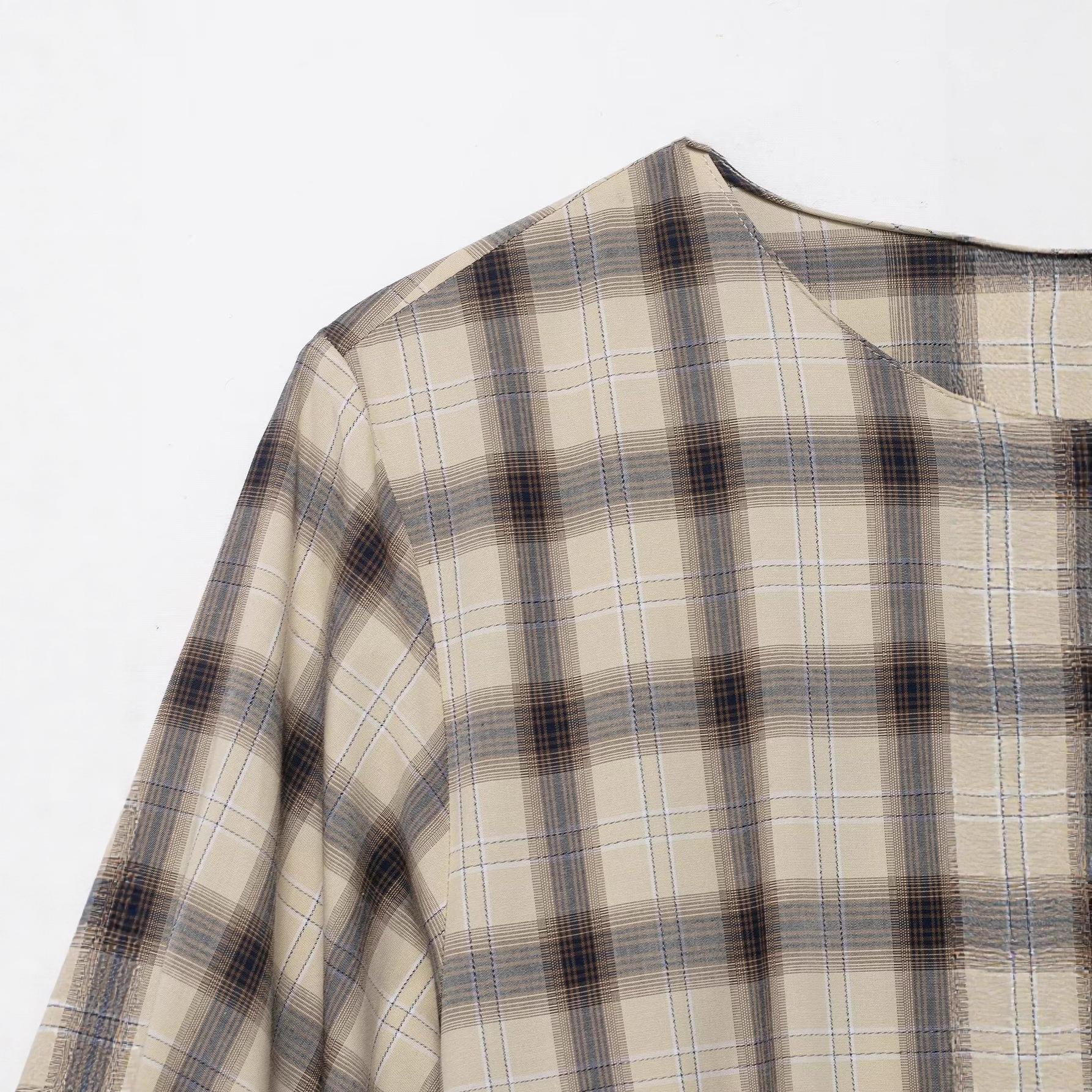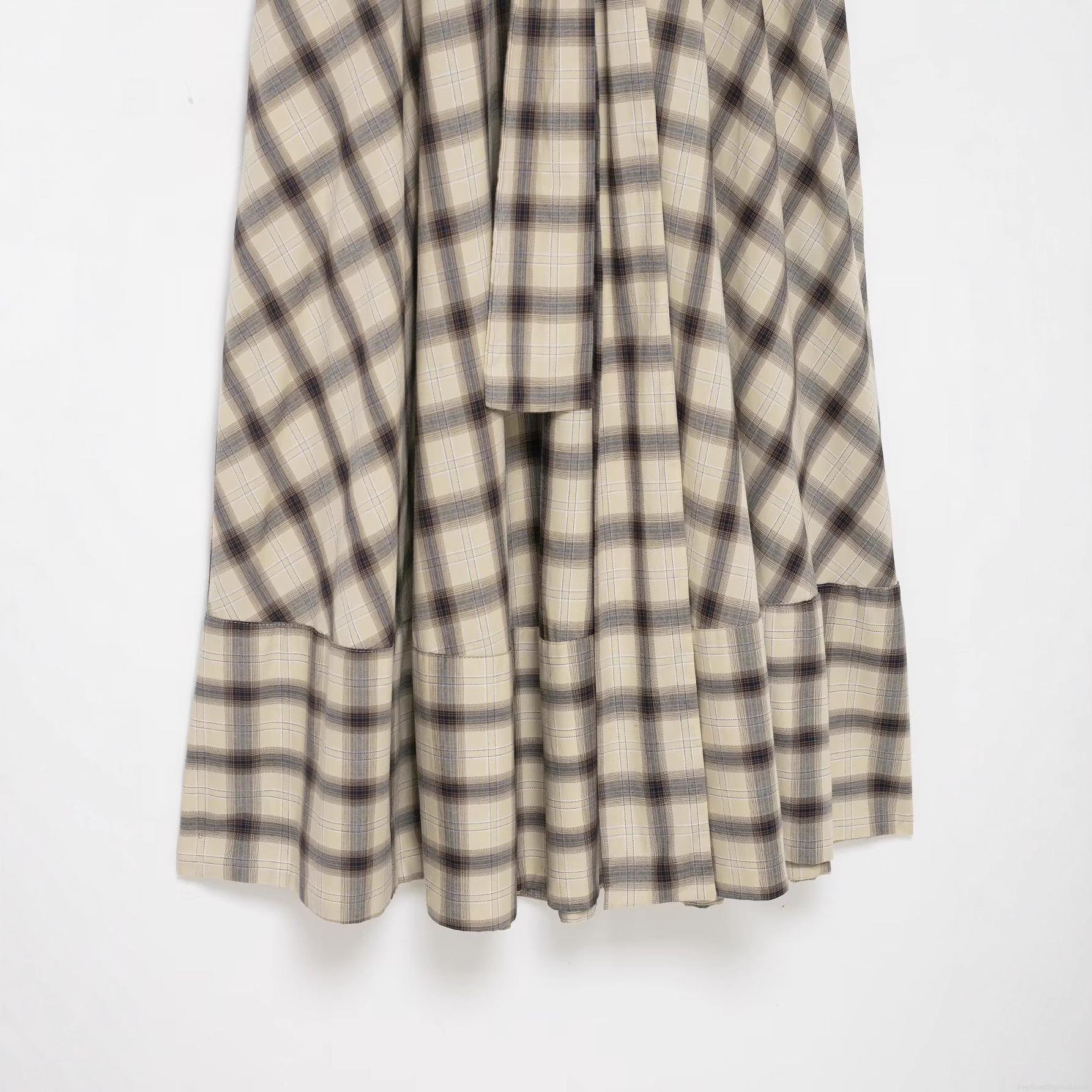 • Women's Retro Plaid Maxi Dress Long Lantern Sleeve Round Neck Belted A-Line Pullover Polyester Street Style Spring Casual Long Dress