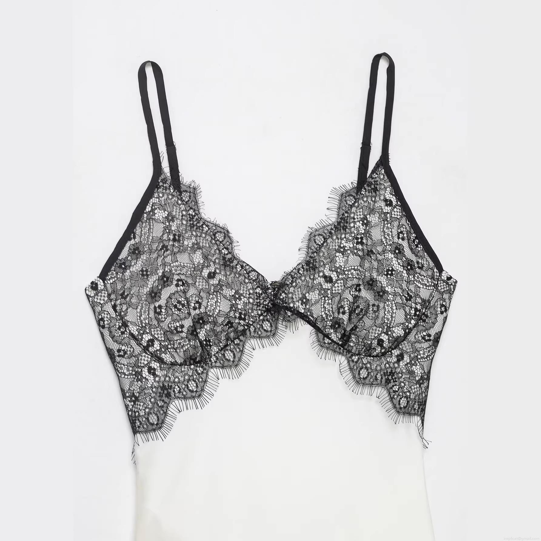 Color Blocking, V-neck, Backless, Lace Patchwork, Floral Lace, Thin Straps