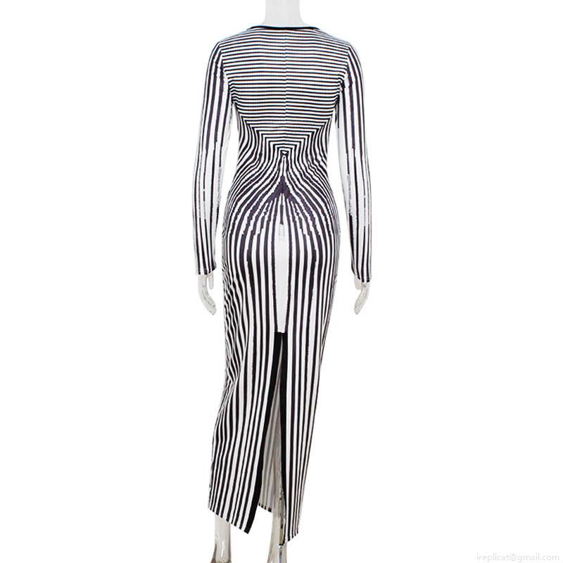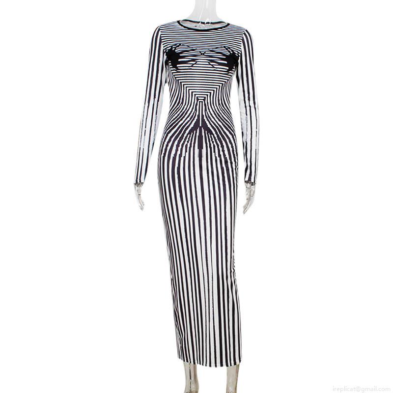 • Women's Sexy 3D Optical Illusion Stripe Print Maxi Dress Long Sleeve Round Neck Bodycon Polyester Spandex Dress With Back Slit For Party Clubwear