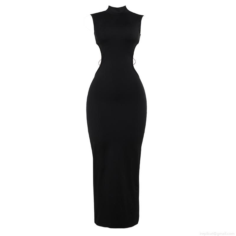 • Women's Sexy Backless Bodycon Maxi Dress Butterfly Bow Metal Detail High Neck Sleeveless Hollow Out Slit Dress For Club Night Out Party Polyester Spandex