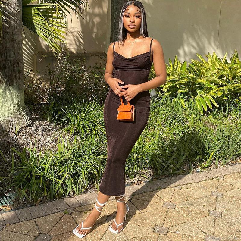 • Women's Sexy Backless Cowl Neck Cami Dress Slim Fit Solid Color Maxi Dress 95% Polyester 5% Spandex Elegant Party Clubwear Beach Vacation Bodycon Long Dress