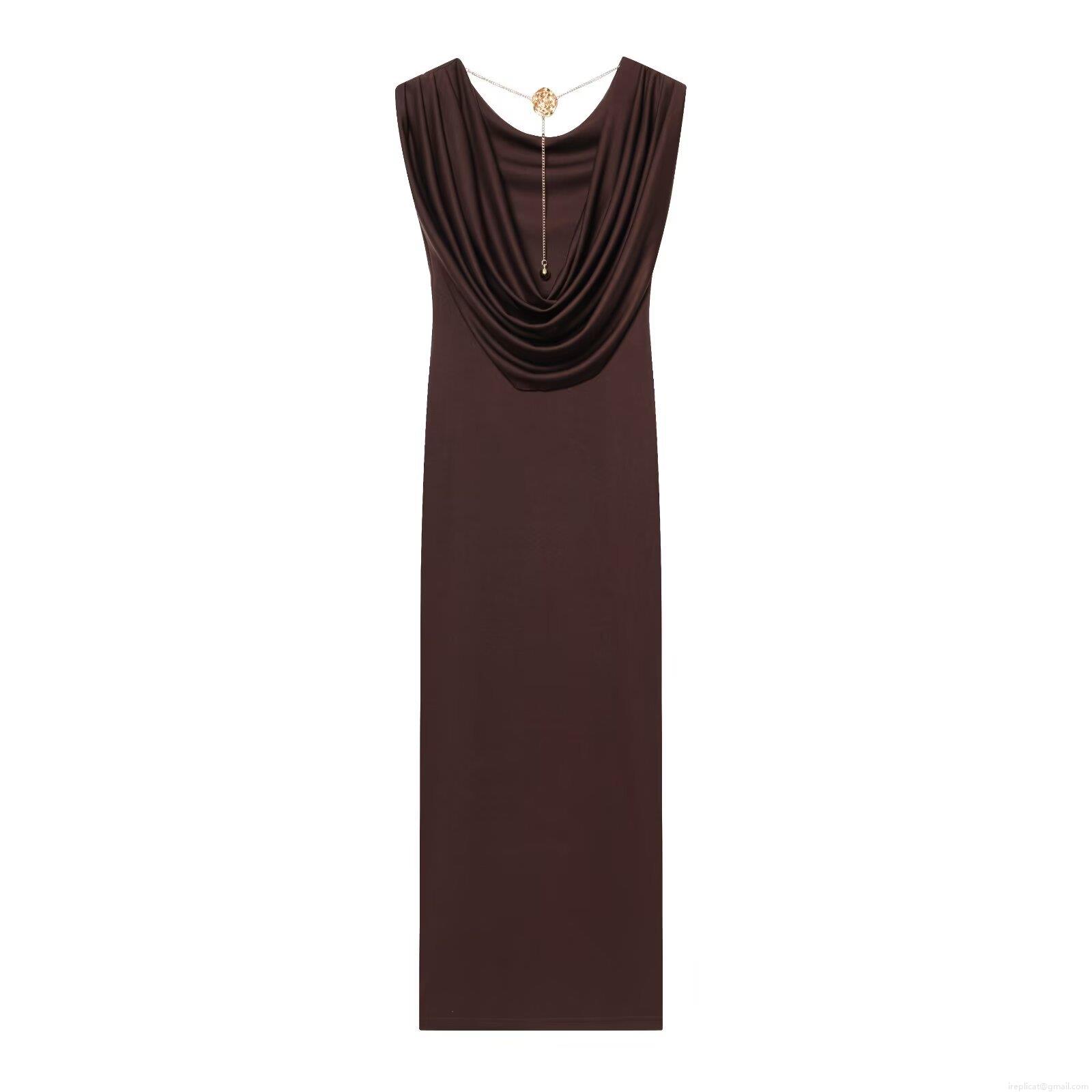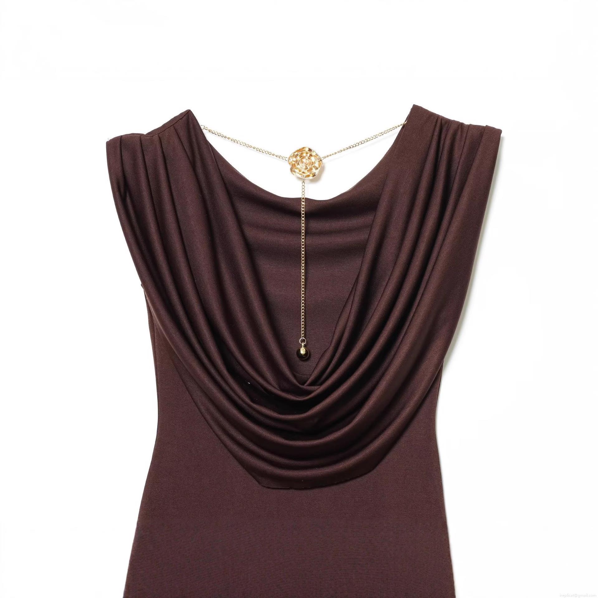 • Women's Sexy Backless Cowl Neck Maxi Dress With Gold Rose Chain Detail Elegant Sleeveless Bodycon Stretch Polyester Floor Length Dress For Evening Party Club Night Outfits