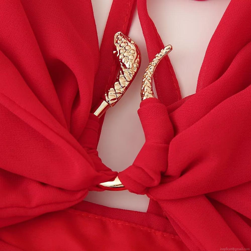 Solid Color, Splice, Hollow Out, Collage, Backless, Metal Ring, Metal Snake Decoration