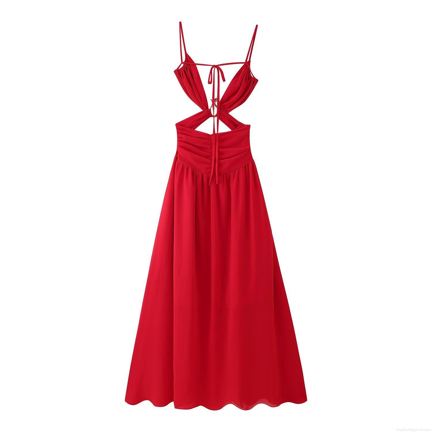 • Women's Sexy Backless Cutout Camisole Maxi Dress Polyester Spandex Metal Ring Decor Sleeveless High Waist Slim Fit Summer Vacation Long Party Dress