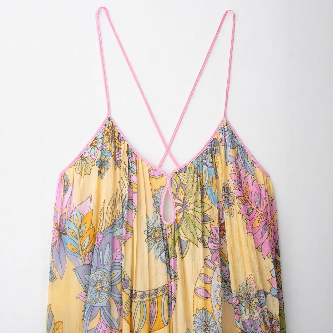 • Women's Sexy Backless Floral Print Cami Maxi Dress Bohemian Summer Beach Vacation Long Dress Cross Straps Chiffon Polyester Sundress For Party