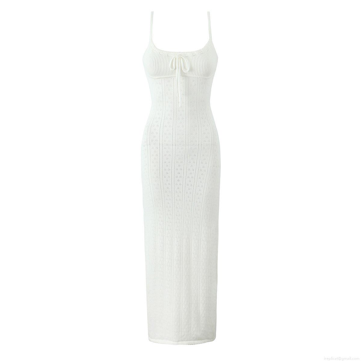 Solid Color, Hollow Out, Ribbed, Lace, Backless, Openwork Jacquard, Rear Fork, Chest Drawstring