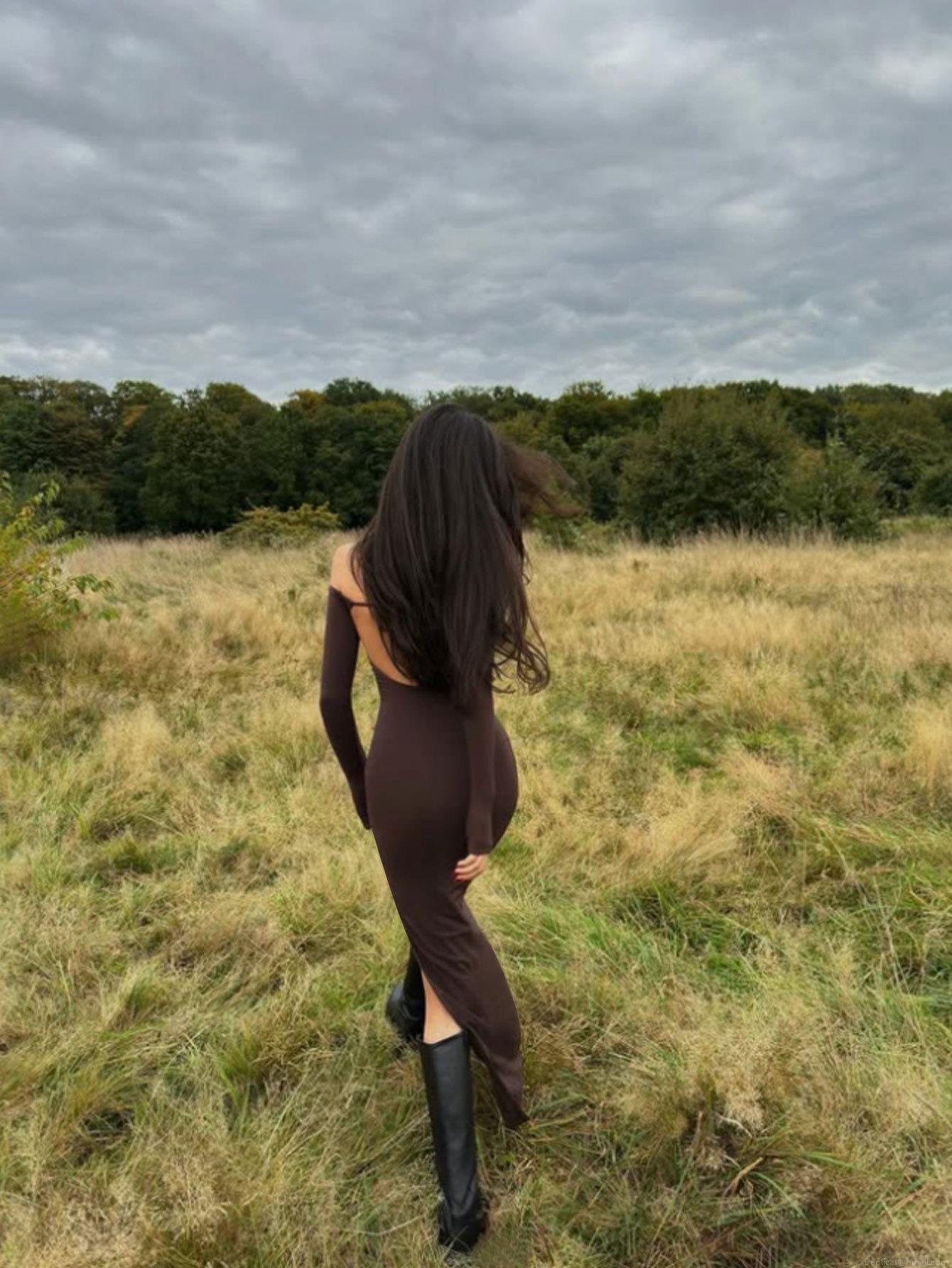 • Women's Sexy Backless Knitted Maxi Dress Long Sleeve Off Shoulder Slim Fit Solid Coffee Brown Socialite Style Bodycon Long Skirt Evening Party Outfit