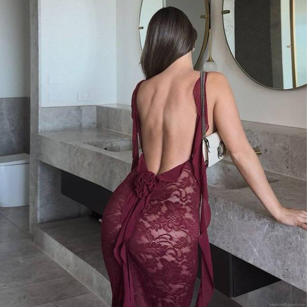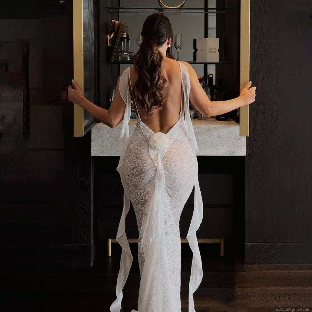• Women's Sexy Backless Lace Maxi Dress With Chiffon Streamers Trailing Spaghetti Strap Slim Fit Evening Party Gown For Weddings And Vacations