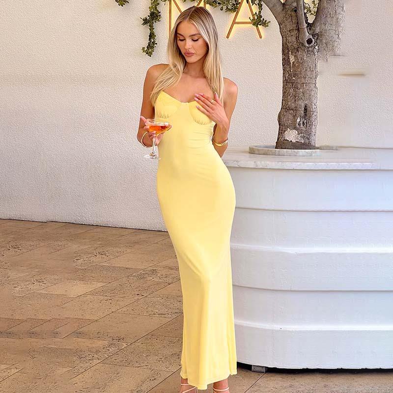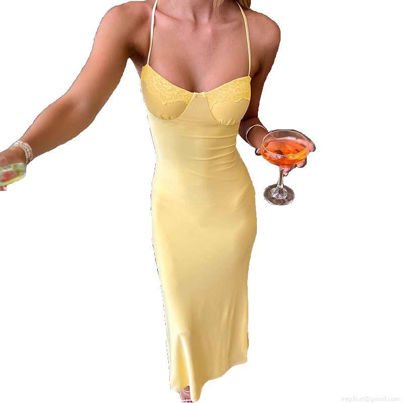 • Women's Sexy Backless Lace Splicing Satin Slip Maxi Dress V-Neck Bodycon Sleeveless Party Evening Long Dress For Summer Vacation