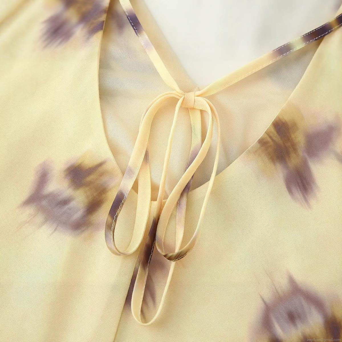 Floral Pattern, Printing, V-neck, Lace, Backless, Abstract Flowers