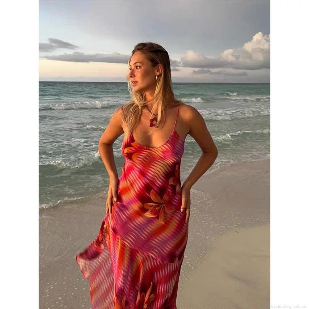 • Women's Sexy Backless Maxi Dress Floral Print Spaghetti Strap Side Slit Slim Fit Polyester Chiffon Beach Vacation Long Dress