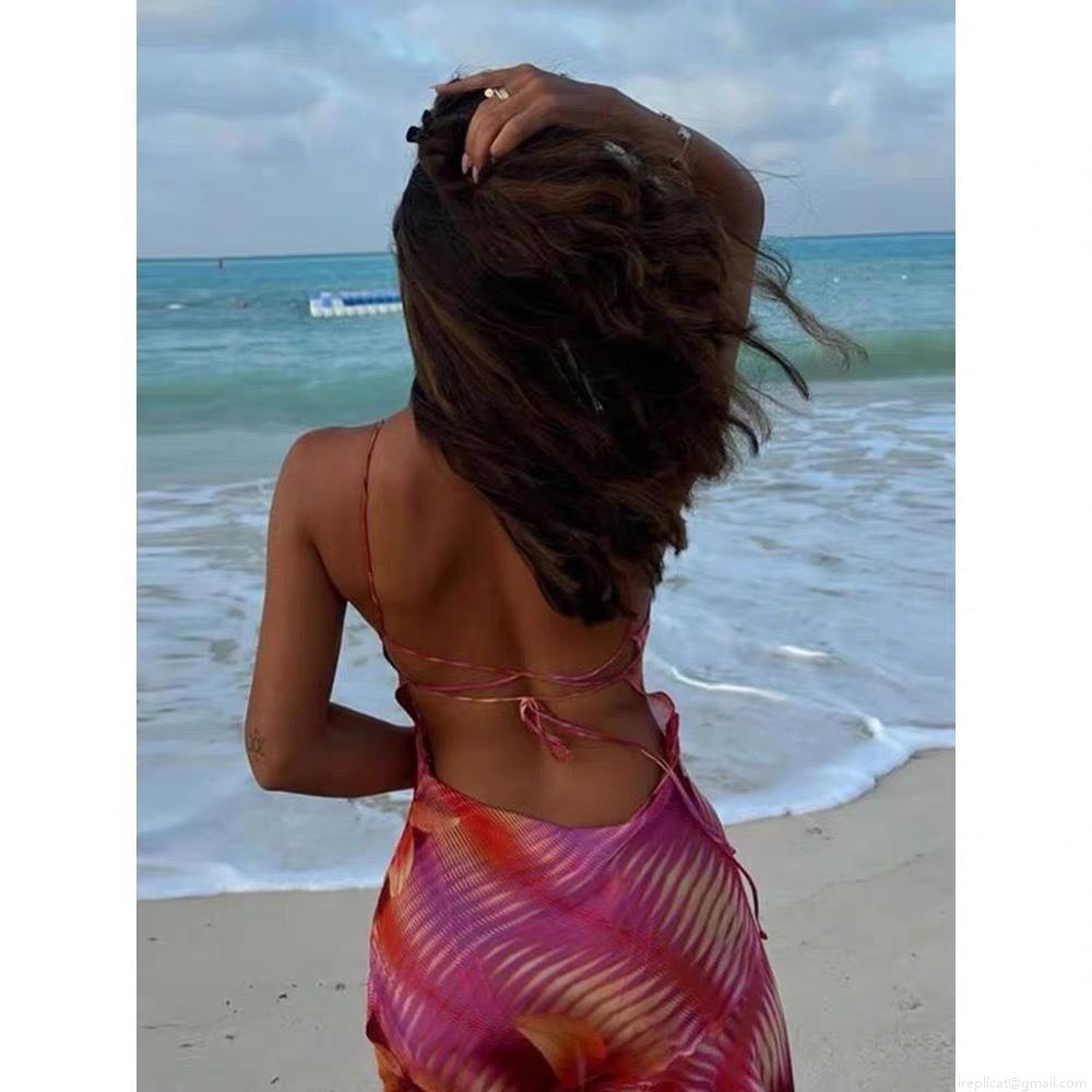 Printing, Lace, Backless, Forked, Floral Print, Gradient Texture