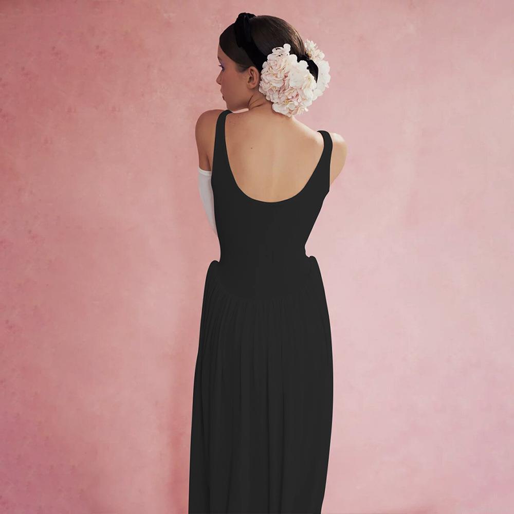 • Women's Sexy Backless Maxi Dress High Slit Slim Fit Milk Silk Sleeveless Long Dress For Summer Party Vacation Elegant U-Neck Clubwear Solid Color Evening Gown