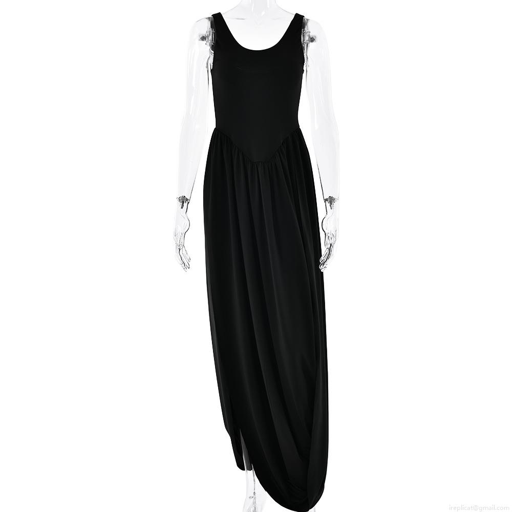 Solid Color, Pleats, Backless, High Fork, Irregular Hem