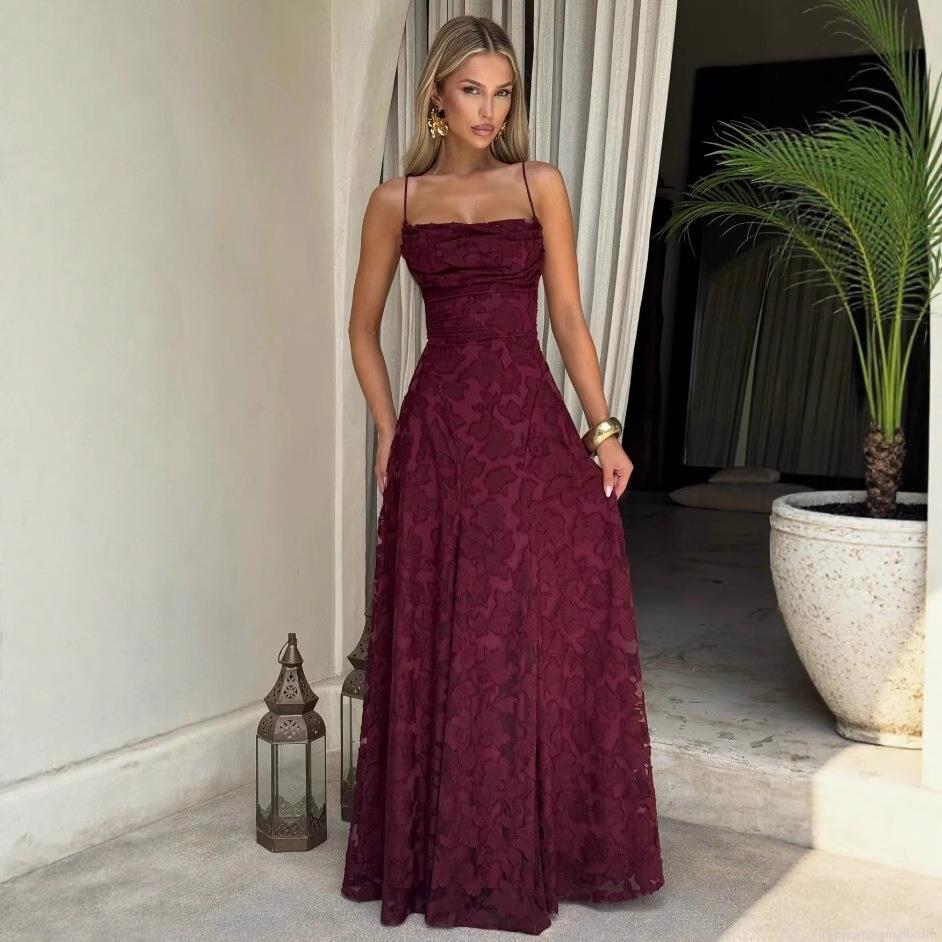 • Women's Sexy Backless Maxi Dress Jacquard Floral Spaghetti Strap Slim Fit Evening Party Long Dress Elegant Summer Beach Vacation Sun Dress