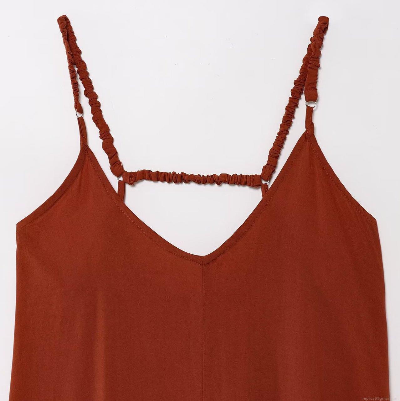 Solid Color, V-neck, Backless, Gathering, Thin Shoulder Straps