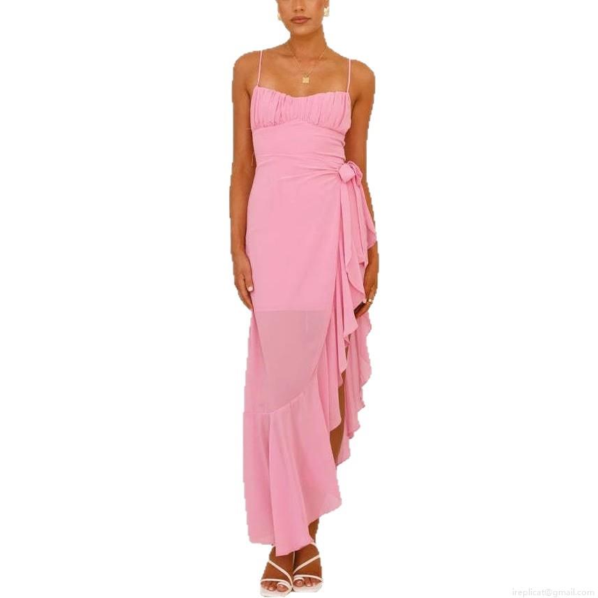 Solid Color, Pleats, Ruffles, Suspenders, Backless, Irregular Hem