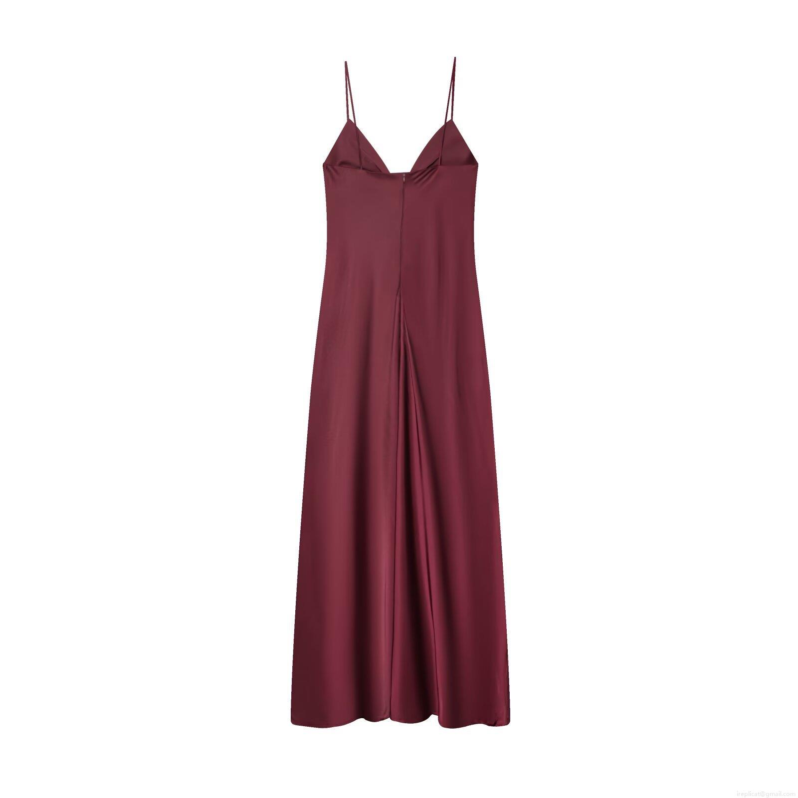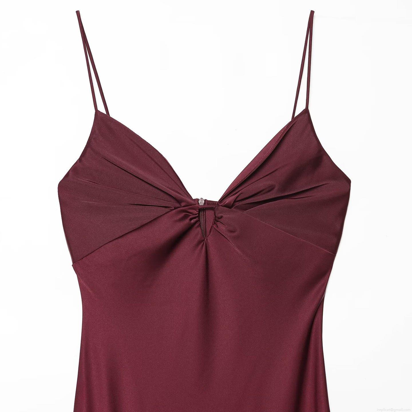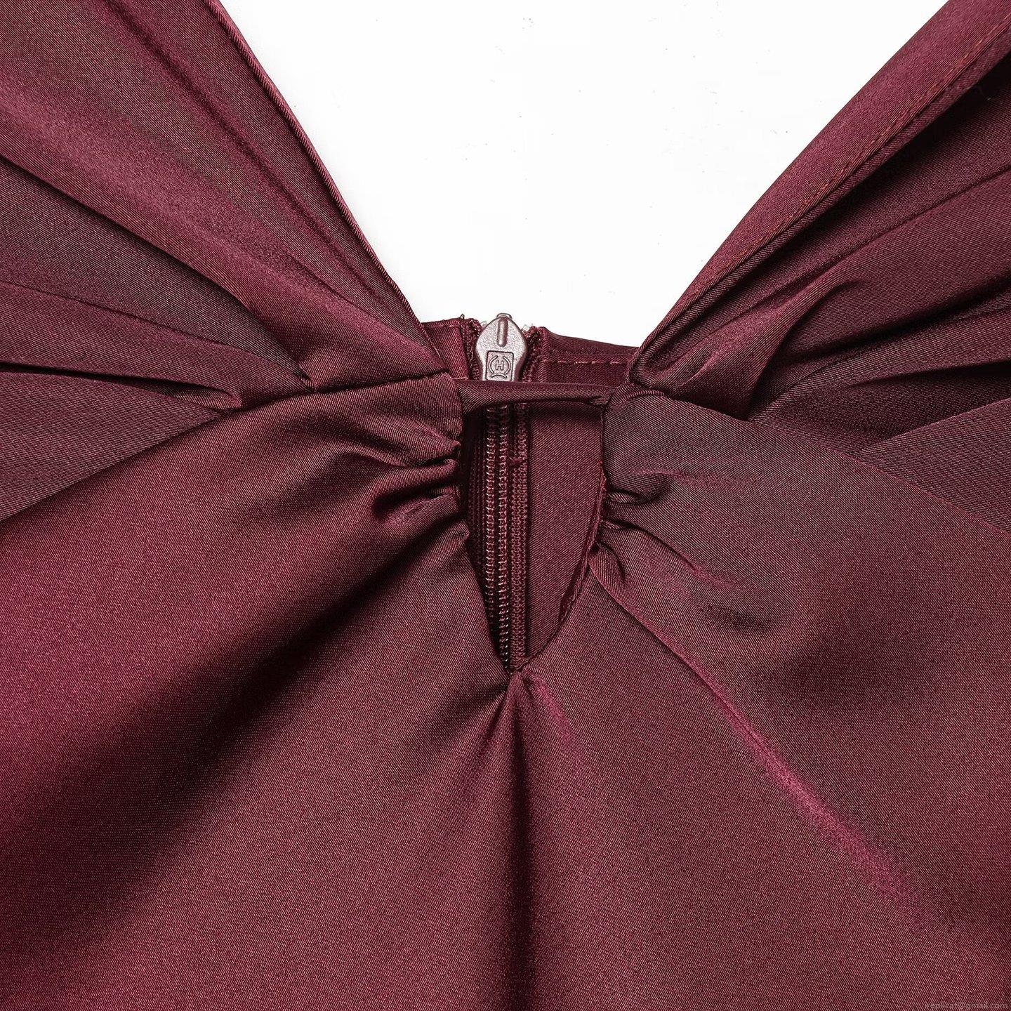 Solid Color, Pleats, Knot, Backless, Satin Finish, Thin Straps