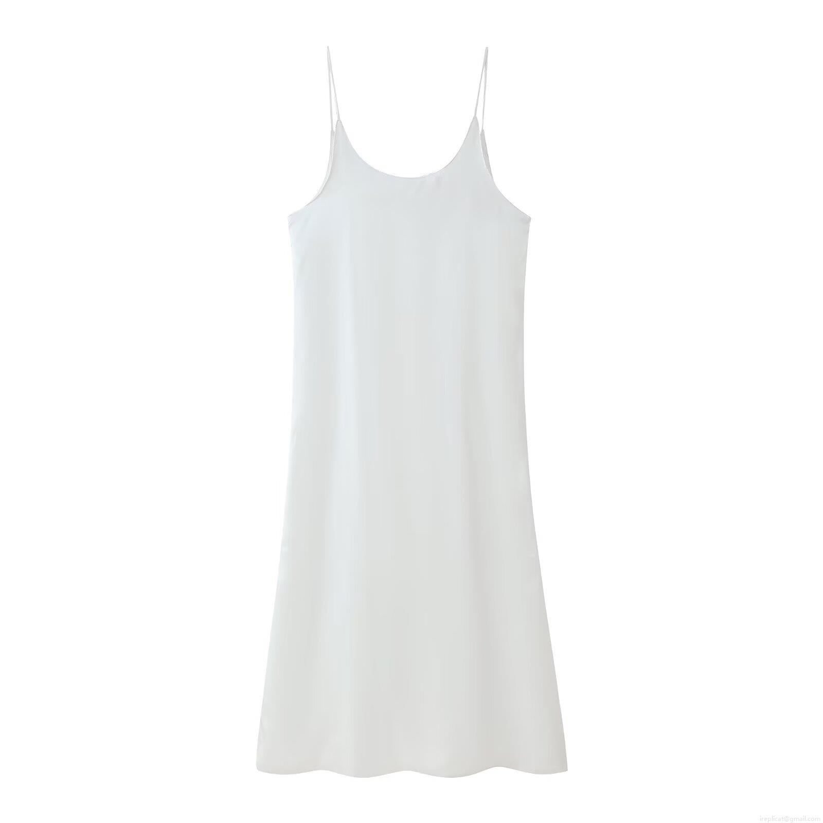 • Women's Sexy Backless Satin Polyester Maxi Cami Dress Elegant Split Hem Slip Dress for Summer Party Vacation Minimalist Sleeveless Long White Dress