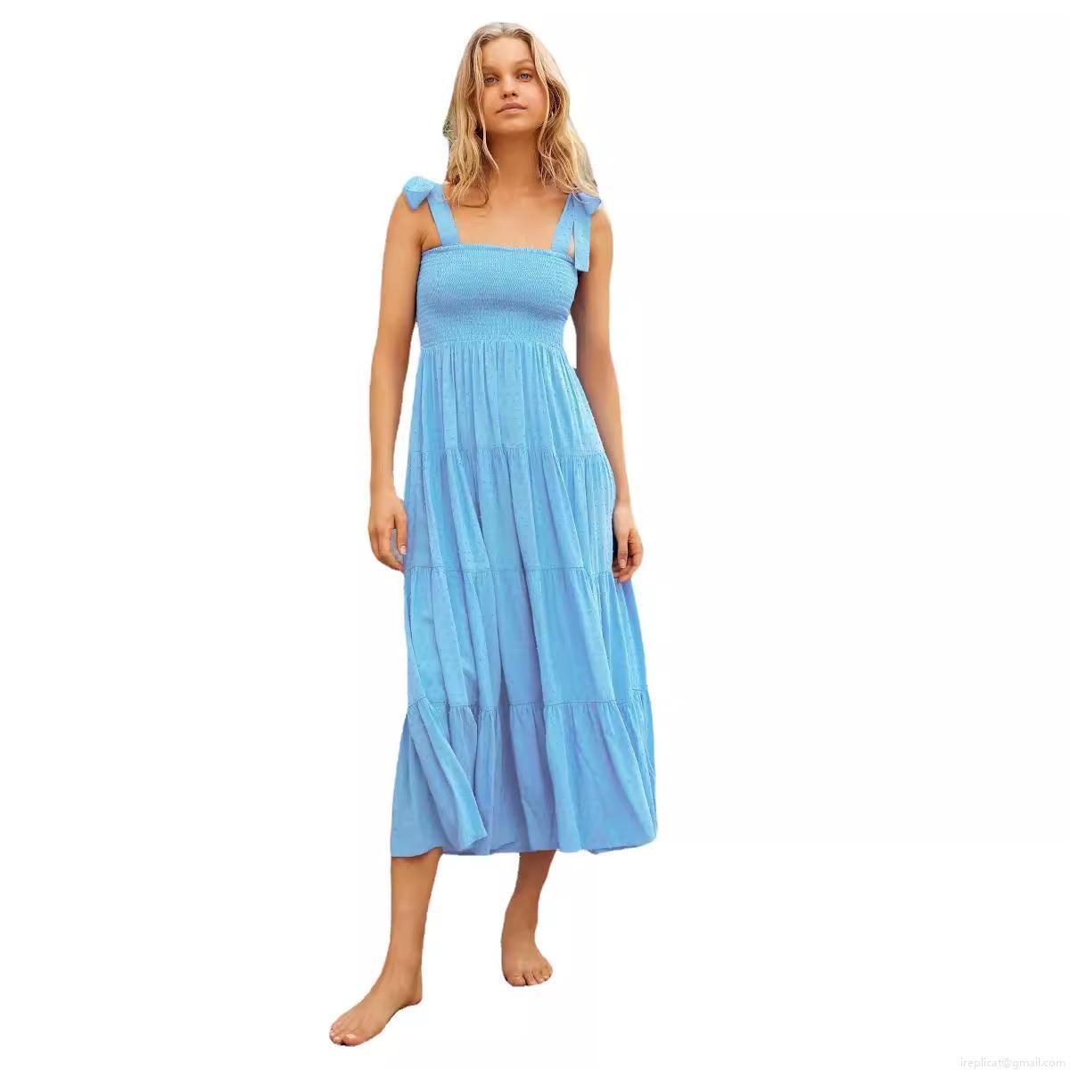 • Women's Sexy Backless Smocked Tiered Maxi Dress With Adjustable Tie Shoulder Straps Swiss Dot Summer Beach Vacation Bohemian Layered Dress