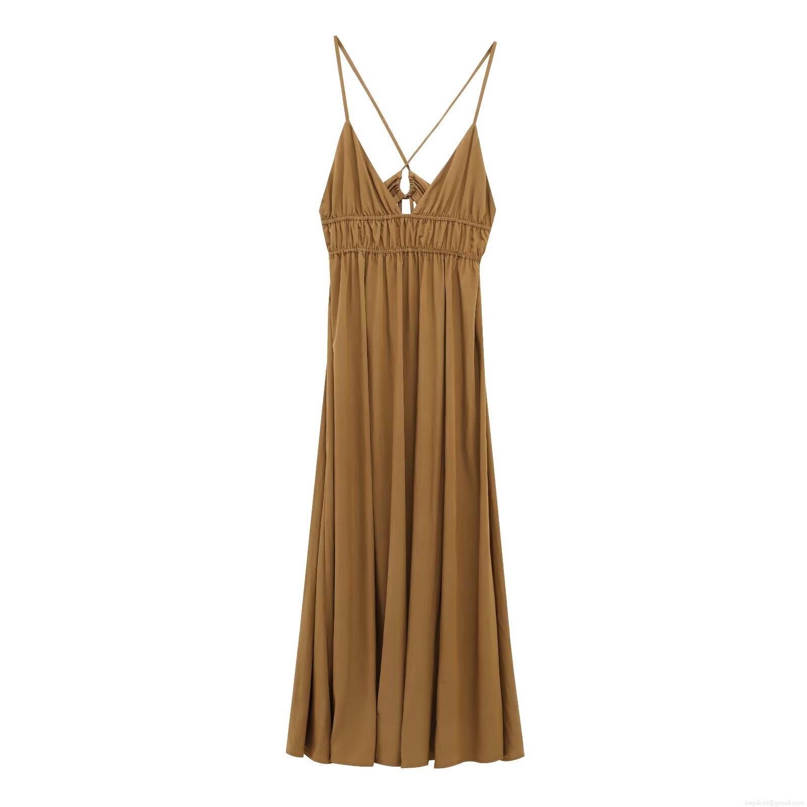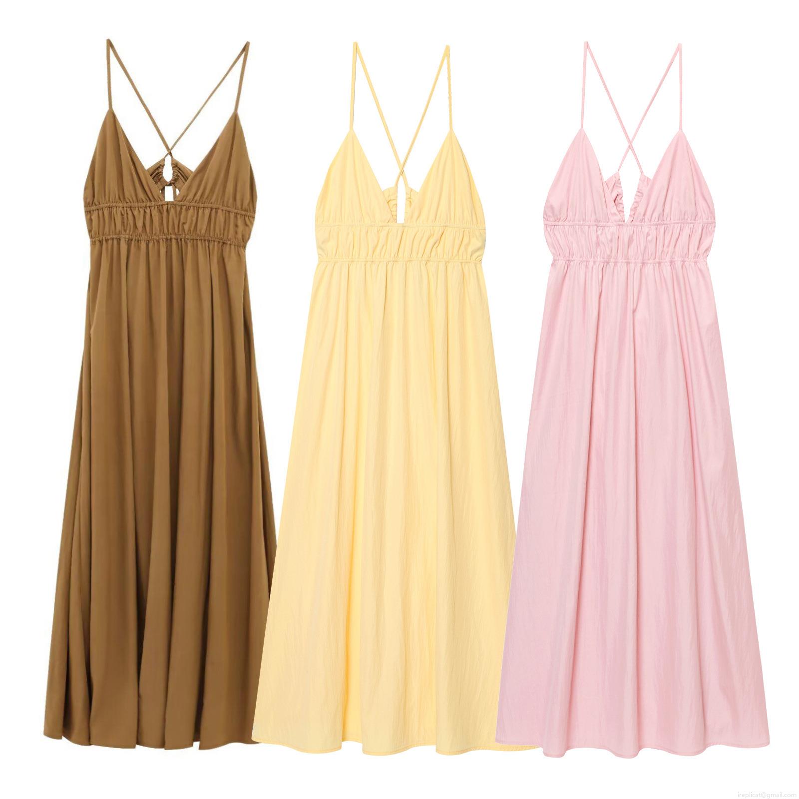 • Women's Sexy Backless Spaghetti Strap Maxi Dress Summer V Neck Polyester Cross Back Solid Color Slim Fit Western Style Midi Sundress