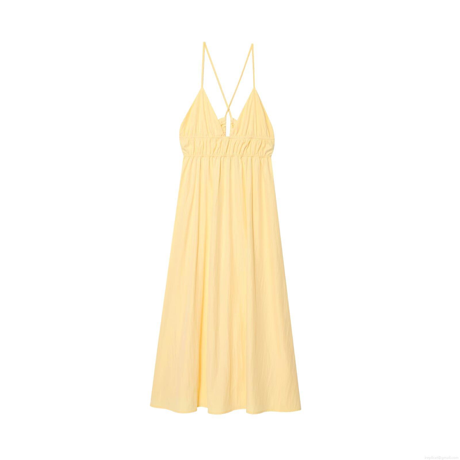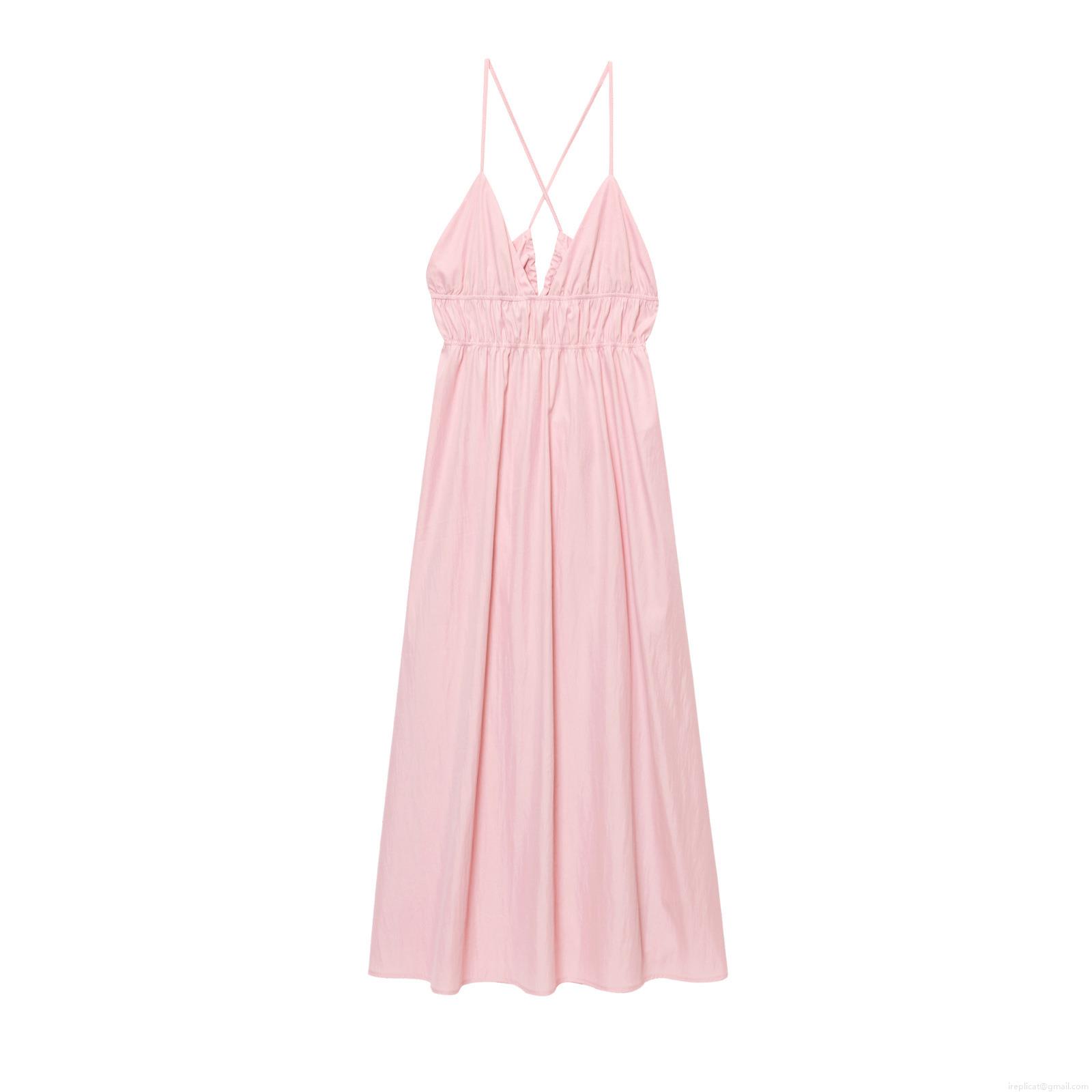 Women's Sexy Backless Spaghetti Strap Maxi Dress Summer V Neck Polyester Cross Back Solid Color Slim Fit Western Style Midi Sundress
